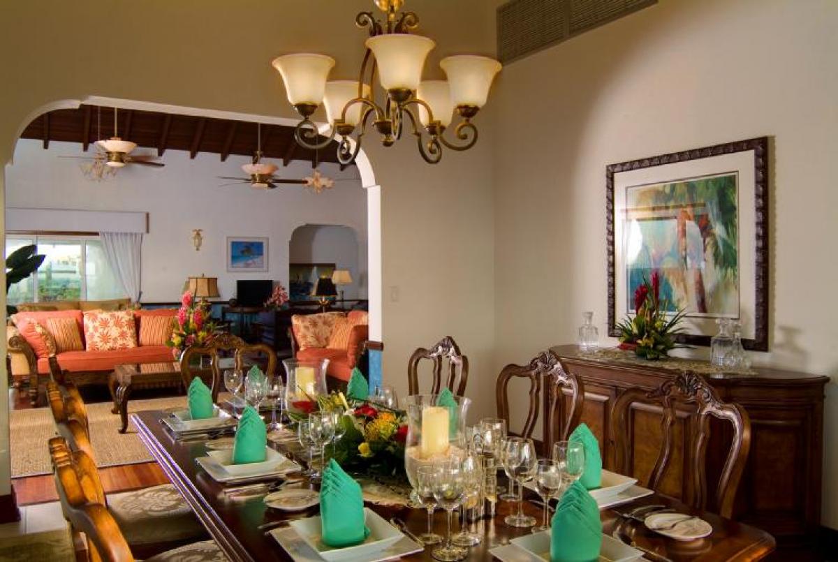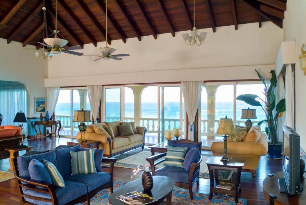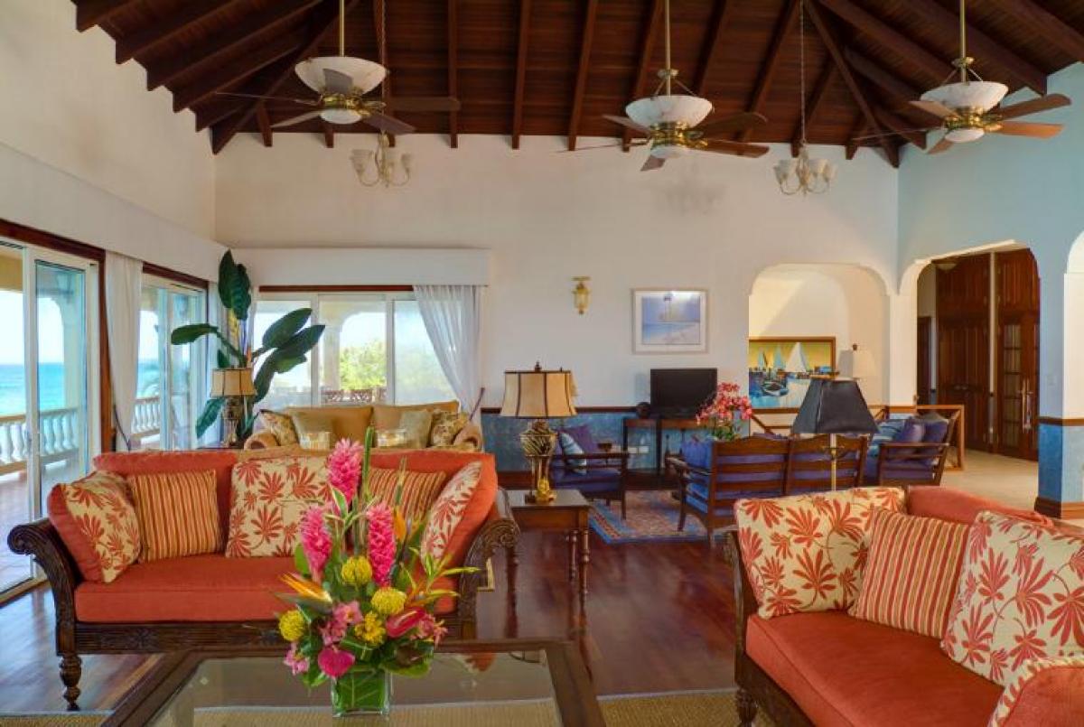 Ultimacy is a gorgeous 8 bedroom, 10 bathroom villa in the prestigious Rose Hill neighborhood on Anguilla's northeast shore. This property has plenty of space to accommodate large family gatherings or can be intimate enough for a couples getaway. There are so many areas where you can relax and unwind, entertain your guests or just enjoy the peaceful sounds of the sea. The best part is the full time staff of butler, housekeeper and food and beverage host. They are there to make your stay most enjoyable! The lush grounds of Ultimacy even have a protected national marine park at the property's edge. Once inside you will love the beautiful furnishings, the three living rooms and three kitchens. There are about 20,000 square feet of indoor and outdoor space to call your own. The three outdoor pavilion areas have everything you could ask for including a private pool, outdoor dining areas, and a wet bar. The amenities are that of a five star resort. If your are curious about activities and entertainment, look no further than the large recreation room on the ground floor. Here you will find a jukebox, a plasma tv, a wet bar and multiple seating areas. There is also an office and a state of the art fitness room.