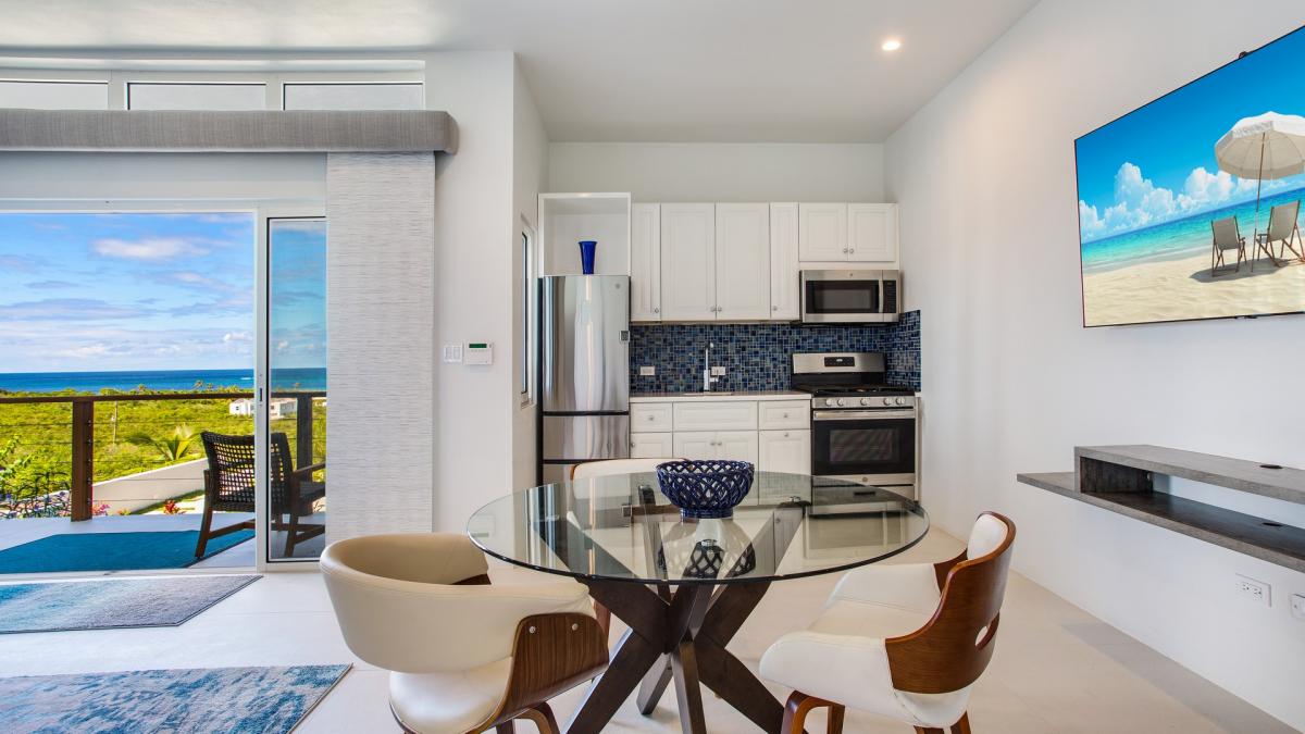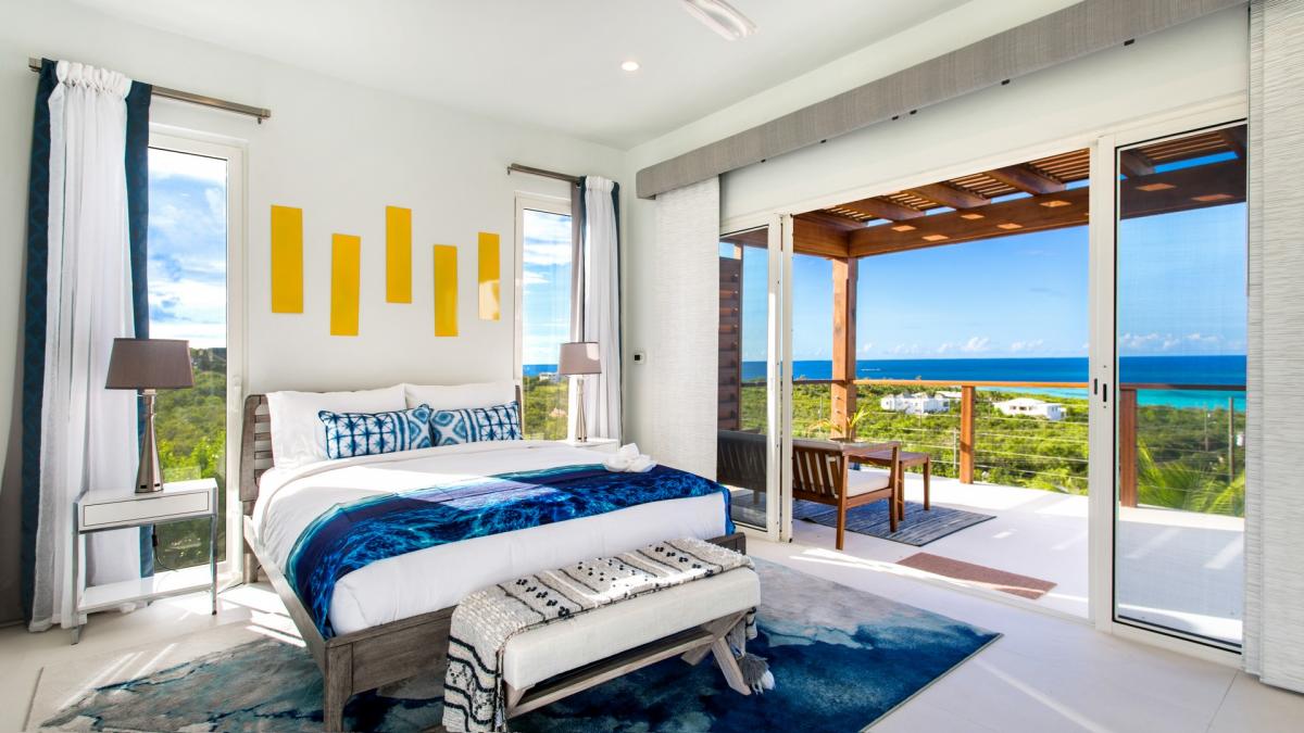 With five bedrooms and six bathrooms, Villa Alkera holds strong to its ocean allure by exuding modern energy with bold, striking color pairings of ocean blue patterns and hues. Each bedroom has decor that embraces the overall ocean theme charm of Villa Alkera. The kitchen is fully equipped with a double oven, a hidden integrated fridge/freezer, a full gas range and grill, a coffee maker, and everything else needed for guests to serve up a warm and delicious meal. The villa's massive panel doors, panoramic ocean views, walk-in closets, walk-out patios, and self-contained kitchen units vary between rooms.