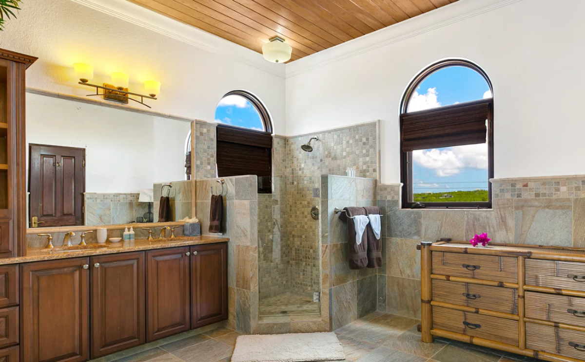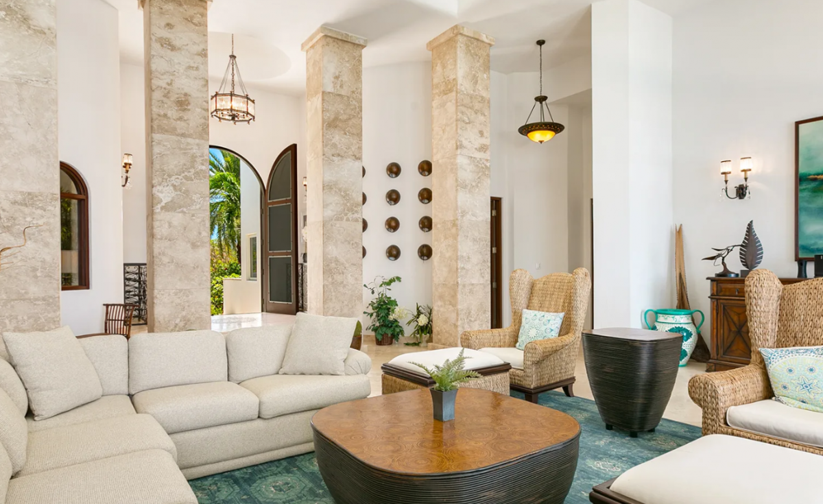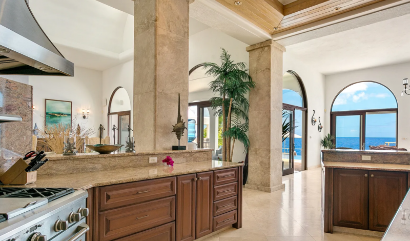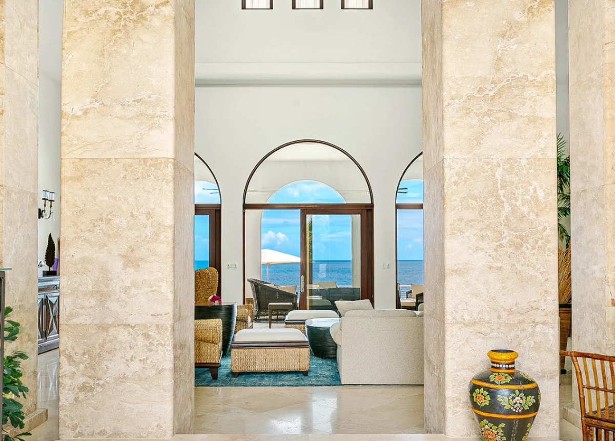Spanning over 11,000 square feet, Villa Azul is a striking blend of Moroccan-inspired design and Caribbean luxury. Just steps from the untouched white sands of Limestone Bay, this five-bedroom estate offers a seamless connection between indoor elegance and outdoor beauty. The open-plan living and dining area, crowned by a dramatic vaulted dome ceiling, flows effortlessly out to a spectacular two-tier infinity pool with panoramic views of the turquoise sea.