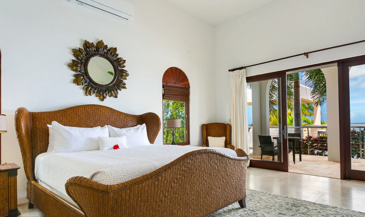 Bedroom 3: King bed, ground floor, ensuite bathroom with shower, AC, opens to pool terrace and ocean view