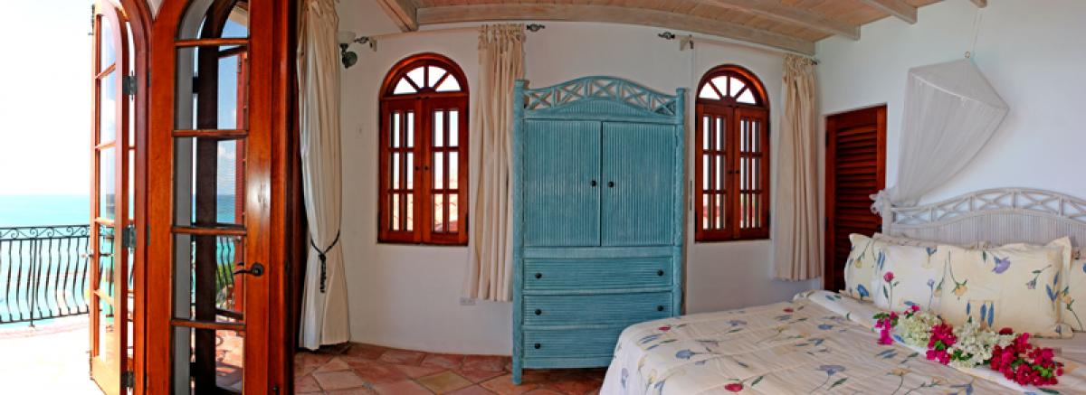 By the amazing natural beauty, privacy and total comfort. The coveted location, exquisite attention to detail and tailoring to the desires of our guests has cumulated in the perfect holiday retreat. The entire design of the villa was developed to transform and relax you. From the precise placement of the walls of glass that open to allow the tropical scented trade winds blow through, to the enveloping furnishings, you will feel the stress of the real world melt away as you take your first steps through the eighteenth century hand carved doors. Five spacious, sumptuously appointed bedrooms are havens of ultimate comfort and supreme elegance, fully air-conditioned with ceiling fans and Italian handcrafted Egyptian cotton linens. You and your guests will enjoy the amazing vanishing edge pool, large covered and open-air decks, heated spa, romantic thatched roof bar and steps to the sea. All bedrooms face the soothing azure ocean and open to a deck or terrace. Villa Azure is one of the prime villas in Anguilla. Contact Villa Luxe for your Anguilla villa rental.
