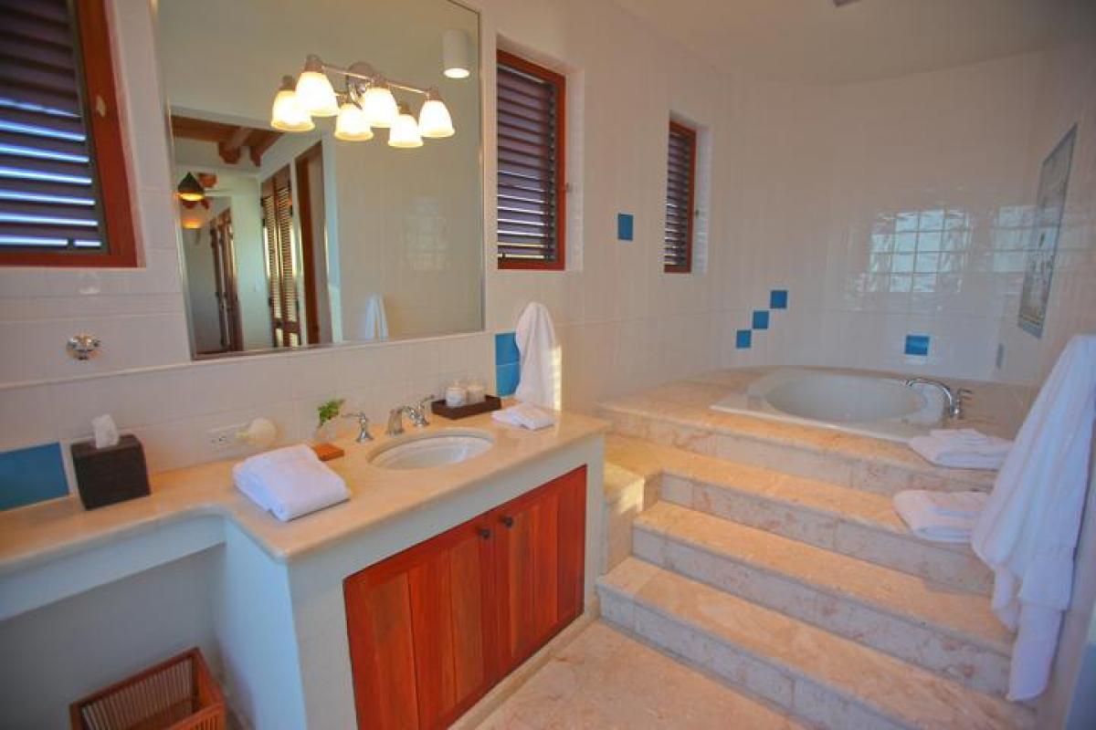 Villa Black Pearl features a unique Mediterranean design including a dome roof, a barrel roof, and verandas and pergolas throughout. While relaxing on the covered porches and open decks, you will find solitude combined with a stunning panorama of the sea, Shoal Bay Beach, Little Scrub Island and Prickly Pear Cays. The large outdoor living room is the perfect spot to toast the magnificent sunset and listen to the sounds of the sea. The indoor spaces are large and airy with ceiling fans and custom furniture designed by the owners and fabricated in Thailand. Natural shell stone floors, rich kabukali and cherry woods, and natural Anguillan stone walls contribute to the seamless indoor-outdoor living. Top-of-the-line fixtures and the finest amenities complete the villa's chic Caribbean style. Villa Black Pearl is one of the prime villas in Anguilla. Relax and enjoy Caribbean vacation rentals with Villa Luxe.