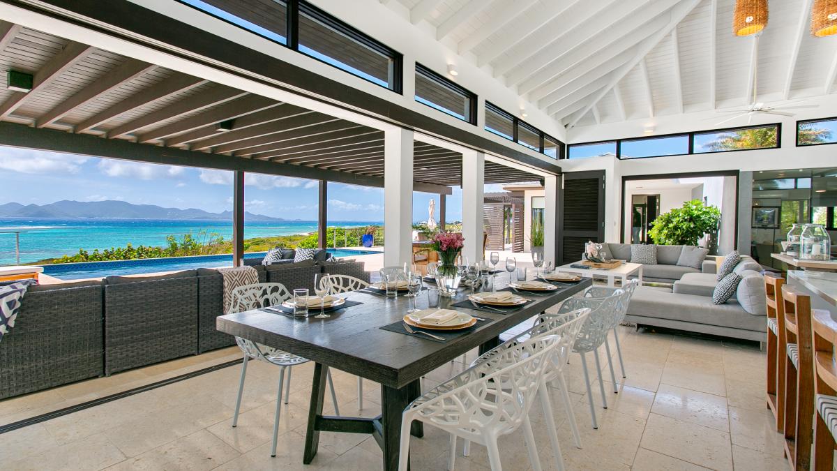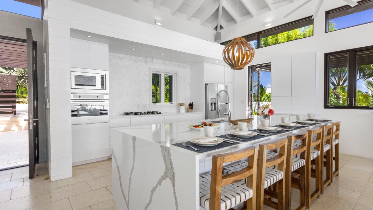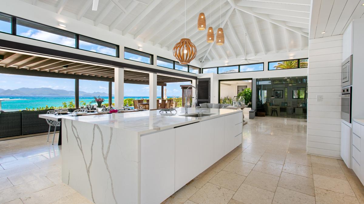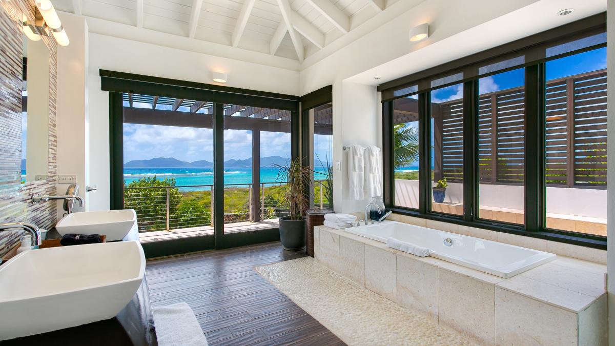 Villa Odyssey is a modern four-bedroom vacation home situated directly on the protected reef of Lockrum Bay and one of the three villas on the Kamique Estate. This Anguilla beach rental was designed to showcase the stunning views all bedrooms in the house. Villa Odyssey has a master suite on each side of the property, which includes a private balcony and outdoor shower. All bedrooms have ensuite luxury bathrooms.