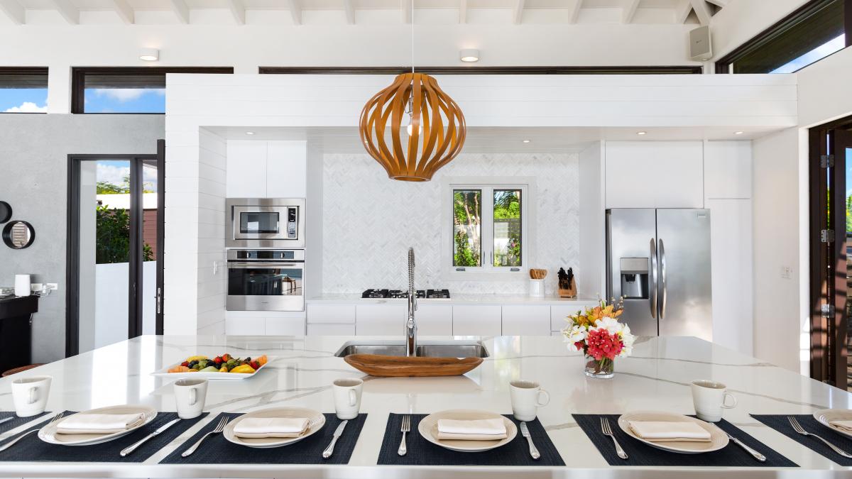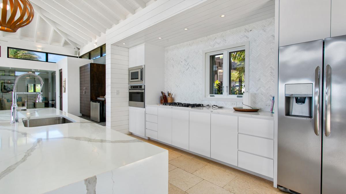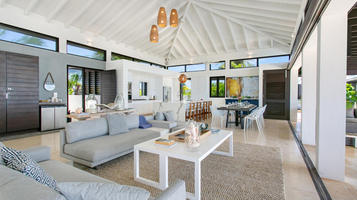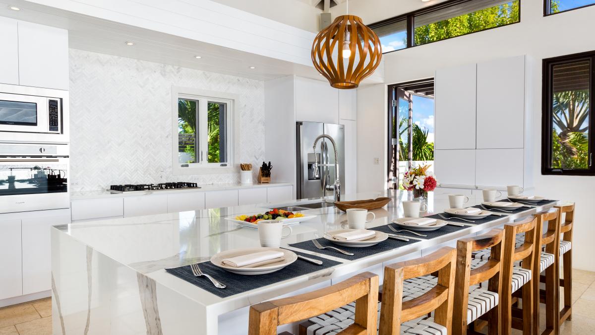 Villa Odyssey is a modern four-bedroom vacation home situated directly on the protected reef of Lockrum Bay and one of the three villas on the Kamique Estate. This Anguilla beach rental was designed to showcase the stunning views all bedrooms in the house. Villa Odyssey has a master suite on each side of the property, which includes a private balcony and outdoor shower. All bedrooms have ensuite luxury bathrooms.