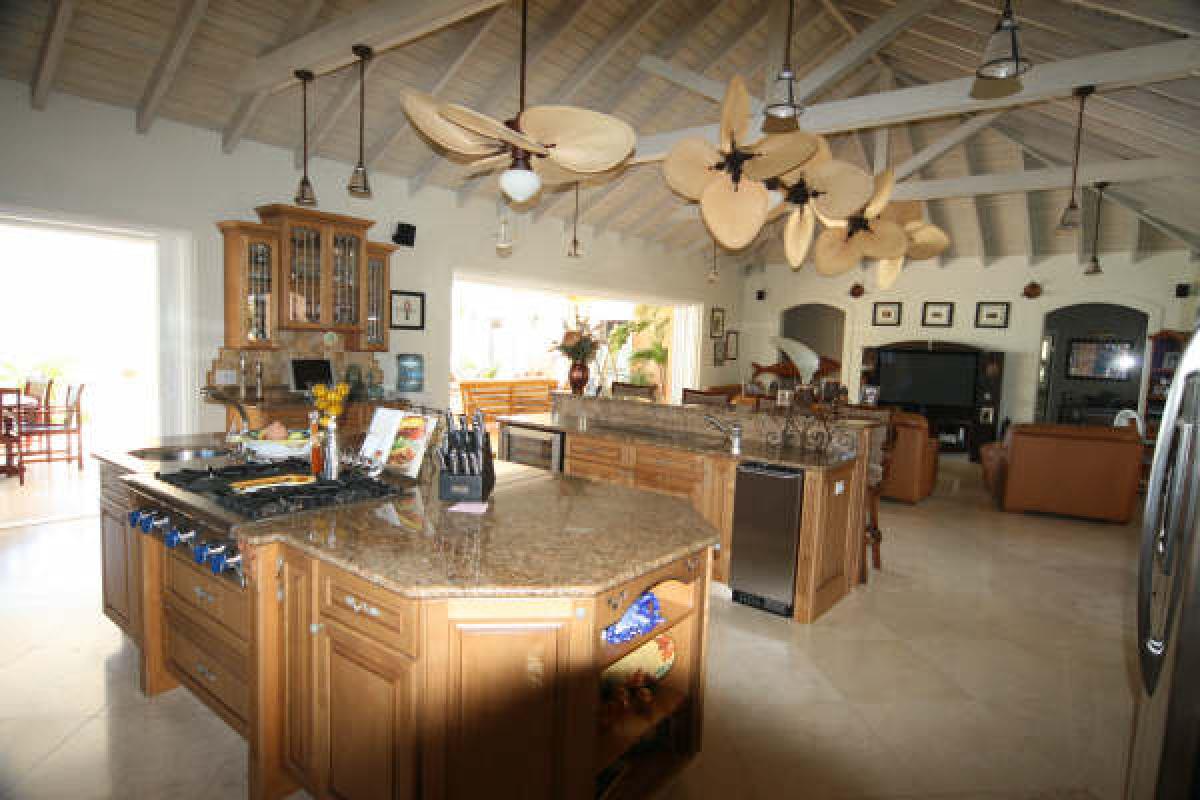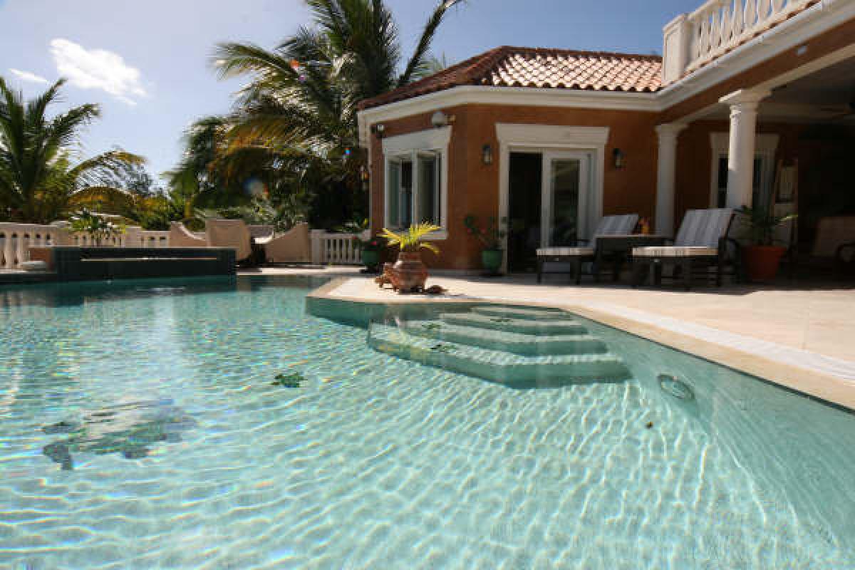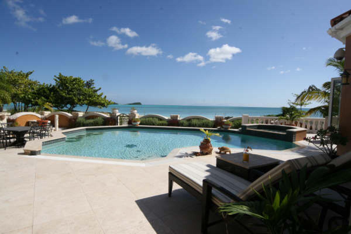 Welcome to Villa Sull Oceano, the ultimate beach front vacation villa rental. Located on the pristine white sand beach of Jolly Harbour, Antigua, you will literally be steps away from the warm and tranquil Caribbean Sea. Immerse yourself in the lap of luxury for the most relaxing week of your life, and enjoy the memories that will be with you forever. Villa Sull Oceano is a newly built 4 bedroom / 4.5 bath Italian style villa with an open air Caribbean feel that will completely captivate you. The unique custom design boasts a huge 20'x40' main salon, and over 1,000 square feet of shaded patio, as well as a second level sundeck for working on your tan. If the 30 steps to the ocean are to far for you, take a swim in your private fresh water swimming pool that includes four submerged bar stools directly adjacent to the outdoor kitchen, so your cold refreshments are readily available. Rinse off in the outdoor shower and take a walk down the beach to "Castaways" beach restaurant for a bit of atmosphere and perhaps a Pina Colada. Villa Sull Oceano is situated directly on the white sand beach of the private and quiet gated community of Jolly Harbour, so you will have all the privacy you need to entertain yourself and your guests in this 4,000 square foot masterpiece of a home. The entire back wall opens up to the covered lanai which has 5 ceiling fans to help blow those warm trade winds throughout the patio and onto the daybed for your afternoon siesta. If sports is your thing, you can play right on the ocean with jetski, catamaran, and kayak rentals located right down the beach, or if you prefer watching, the main salon boasts a 63 inch plasma television for the Football games. Villa Sull Oceano is one of the top villas in Antigua. Come relax and feel the soothing trade winds and warm sunshine!
