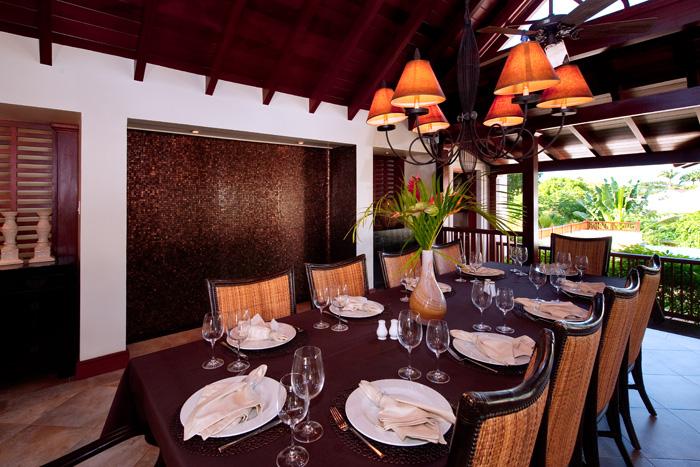 The master suite, which encompasses the whole upper level, is pure indulgence with an ornately decorated double bathroom containing a lavish walk in shower that leads out onto the private patio containing an amazing outdoor tub. The private patio overlooks the pool area and gazebo and offers one of the best views from the property, with a gully (one of Barbados' stunning features) running along the north side and the coast to the west.
