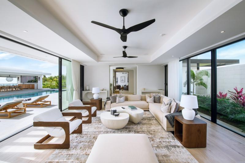 Fairwinds is a six-bedroom Barbados luxury villa set within the exclusive Apes Hill resort community, offering the privacy of a standalone home with the amenities of a world-class resort. With a full staff—including a chef, butler, and housekeeper—as well as its own private gym, cinema, and games room, it’s designed for guests who want to fully unwind during their Barbados vacation. The main house features four serene upstairs bedrooms, three with sea-facing terraces, while a separate two-bedroom guest cottage adds flexibility and privacy for larger groups, couples traveling together, or multi-generational families seeking the comforts of a refined Barbados villa.