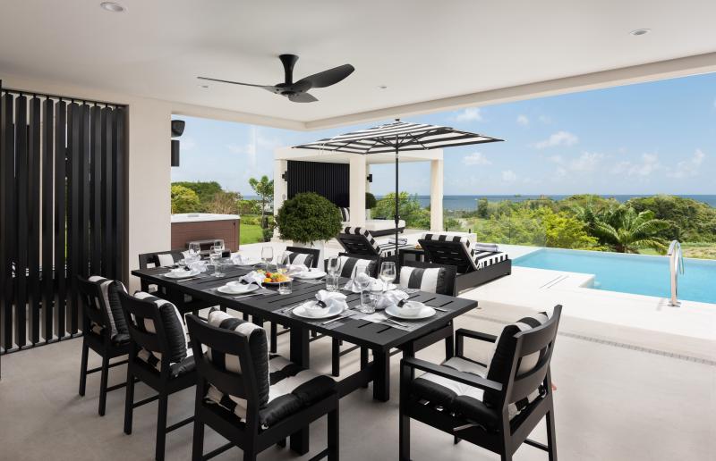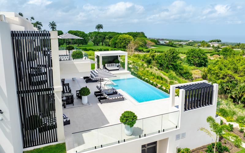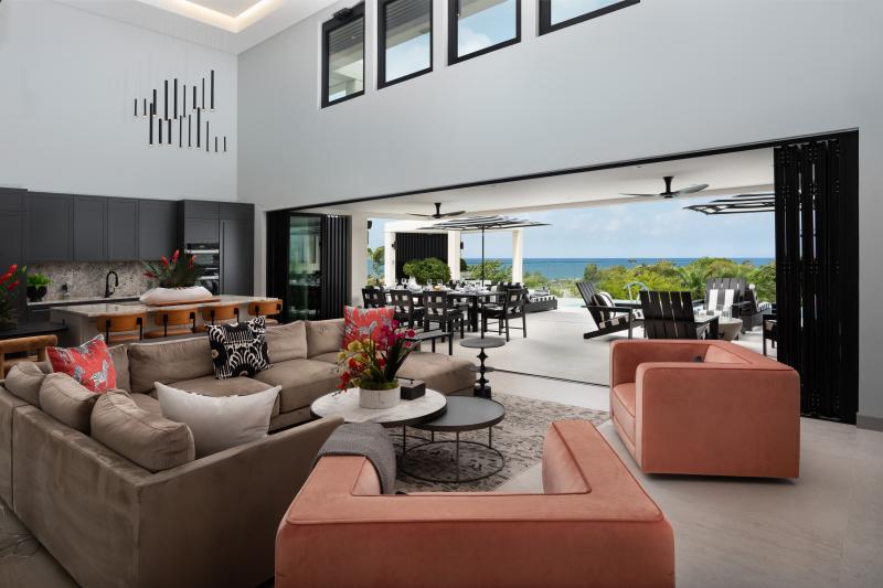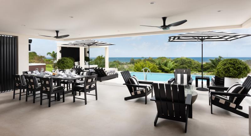 This contemporary four-bedroom Barbados villa in the exclusive Apes Hill golf community offers a fresh, modern setting for a relaxed yet stylish Barbados vacation. Clean lines, sculptural lighting, and an inviting open-plan layout create an effortless sense of ease from the moment you step inside Apes Hills - Fresh Winds. Outdoors, the scene is just as enticing: an infinity pool overlooking both the Caribbean Sea and the golf course, a fire-lit alfresco dining patio, an outdoor grill, a jacuzzi, and a cozy gazebo made for lingering conversations.