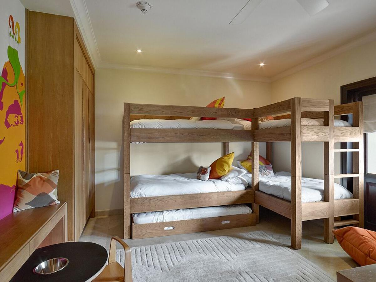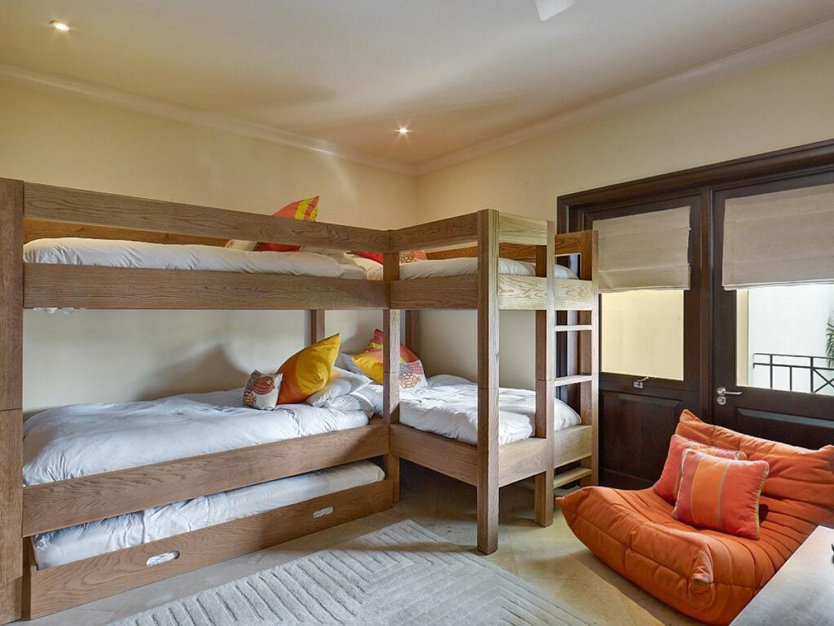 - Bedroom 3: Five single beds, en suite bathroom with shower, terrace, TV, AC, ceiling fan