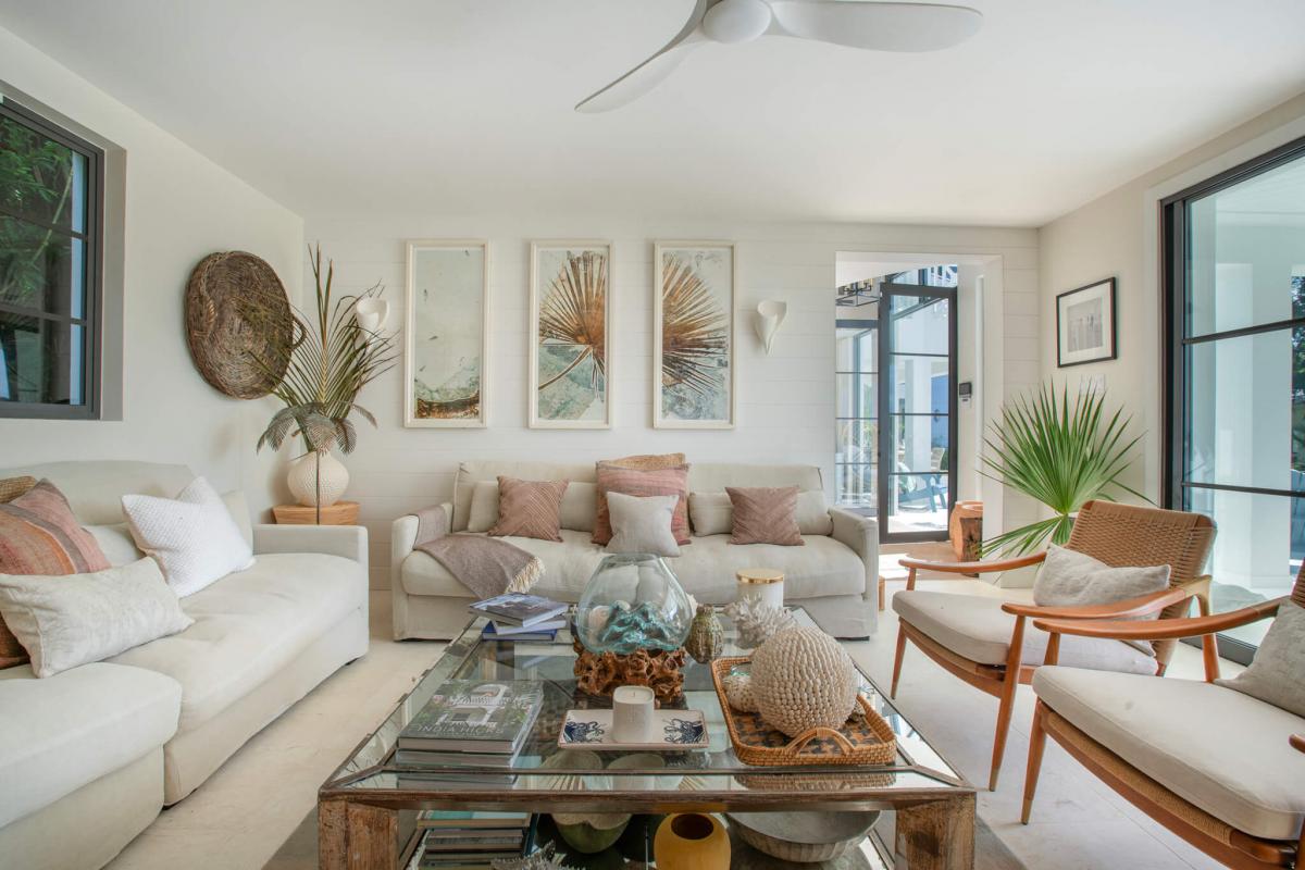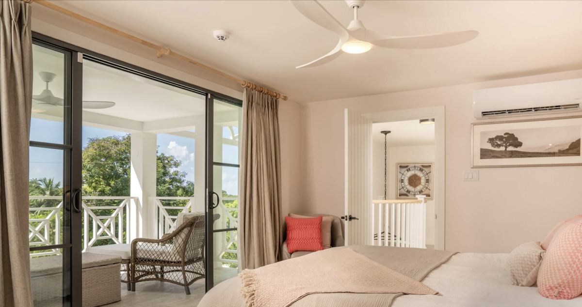 Seastar House was designed by stylist Kate Haynes and offers a sensory haven that promotes wellness and unparalleled comfort. The main house has four exquisite bedrooms, while the other two bedrooms are housed in the charming cottage. The cottage's two bedrooms have ensuite bathrooms, a kitchenette, and inviting terraces. Both living spaces exude an airy charm with balconies and open areas that bring the tropical outdoors inside. The primary bedroom suite elevates opulence with an indulgent bathtub that overlooks the gardens and pool, the perfect spot to sunbathe. A discrete staff is committed to ensuring guests have the utmost comfort while staying at Seastar House. There is an outdoor pool area with a swim-jet pool with tropical plants and sun loungers surrounding it for the best outdoor relaxation Barbados offers. There are more outdoor adventures for guests, such as paddleboards, kayaks, and surfboards. Guests who enjoy wellness also have hand-selected amenities such as a dedicated yoga and gym studio and a refreshing plunge pool.
