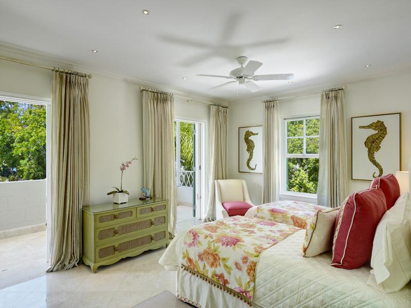 - Bedroom 7: Two single beds (can be converted into king bed), en suite bathroom with shower, vanity, AC, ceiling fan, safe, sound system