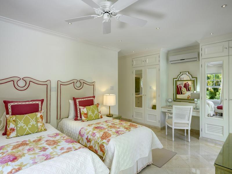 - Bedroom 5: Two single beds (can be converted into king bed), en suite bathroom with shower, vanity, AC, ceiling fan, TV, safe, sound system