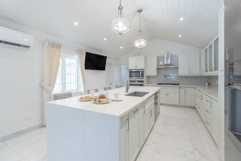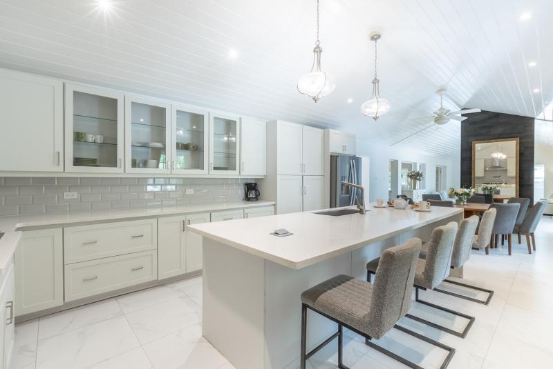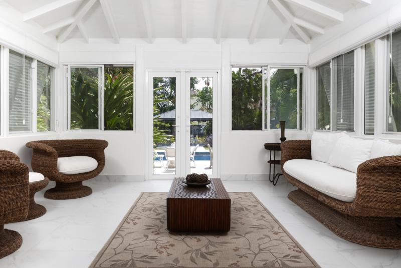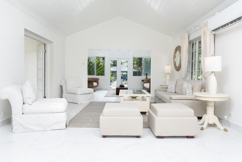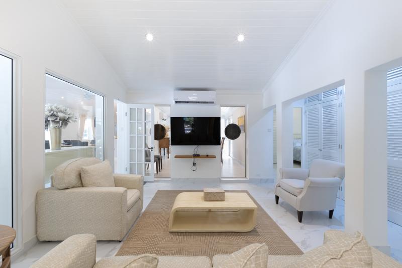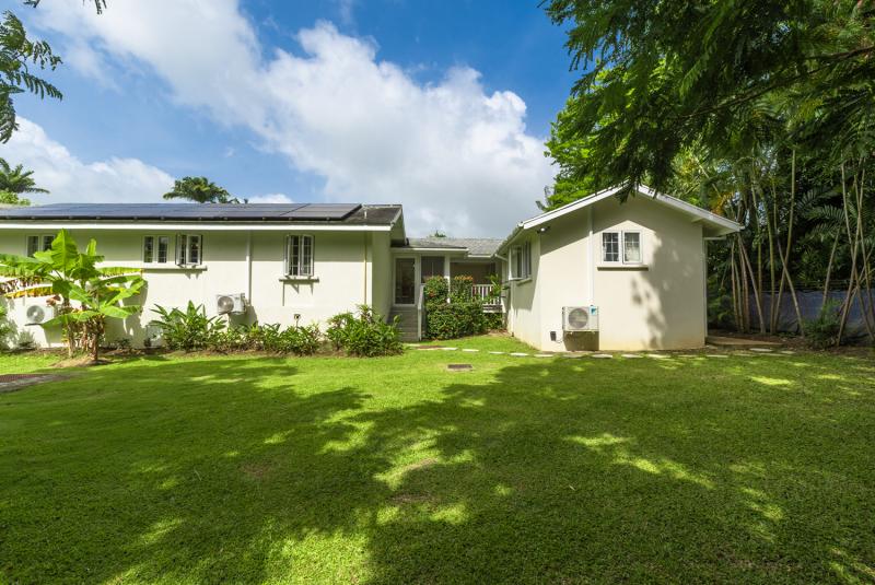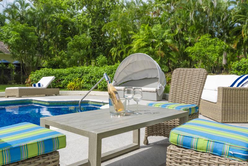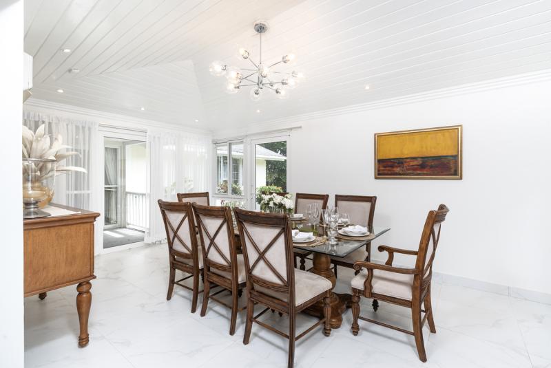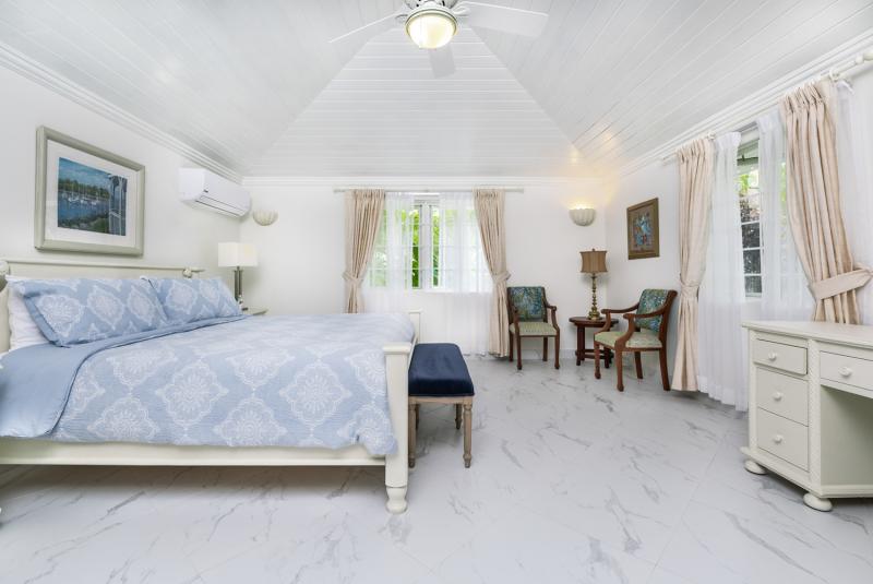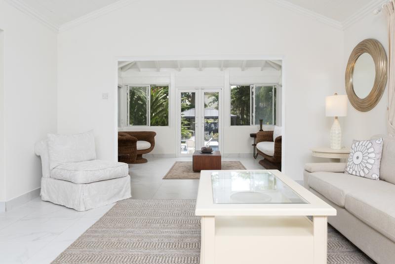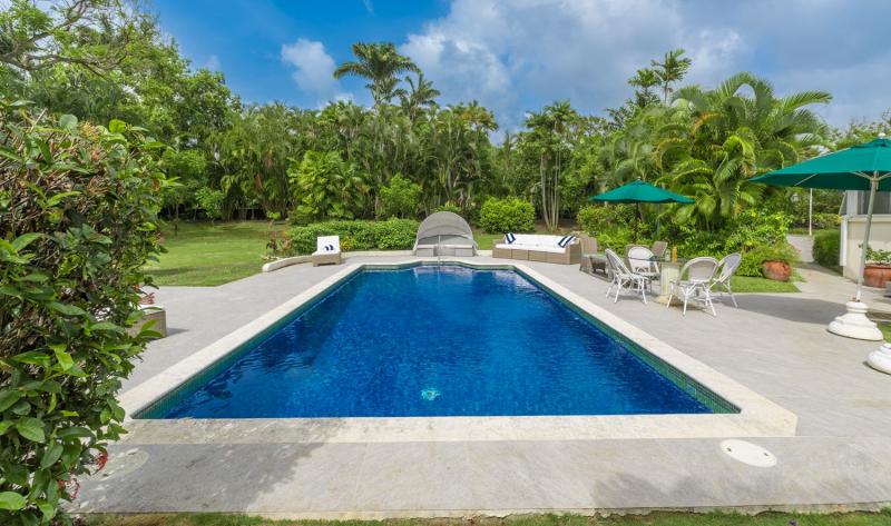 Outdoors, Sylanna features a large private pool framed by lush gardens, ensuring both seclusion and tranquility. The primary suite includes a private outdoor shower and walk-in wardrobes, while the additional bedrooms provide comfortable accommodations for family or guests. Just minutes from Sandy Lane Beach and its world-class golf course, Sylanna is perfectly situated for a Barbados retreat.