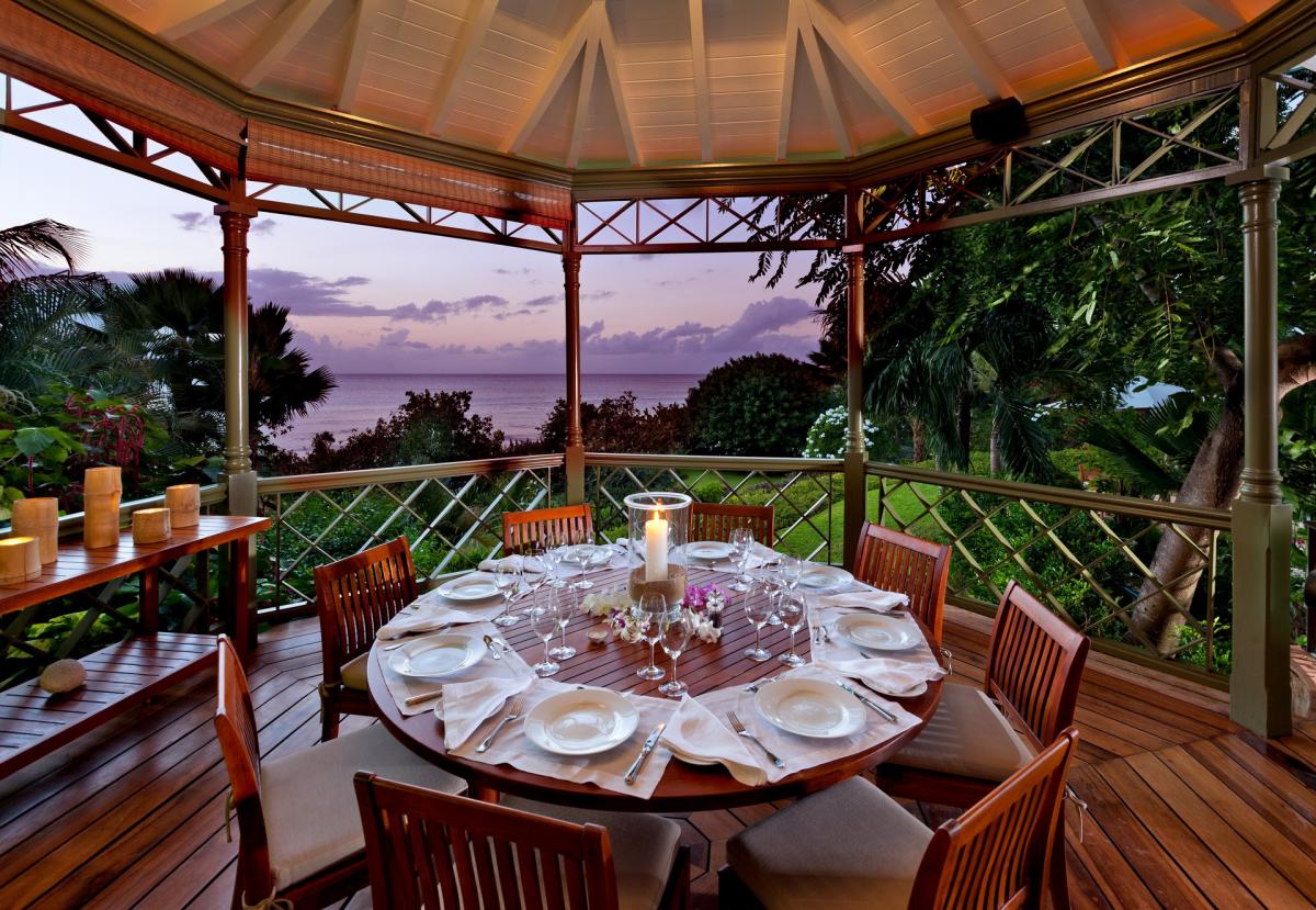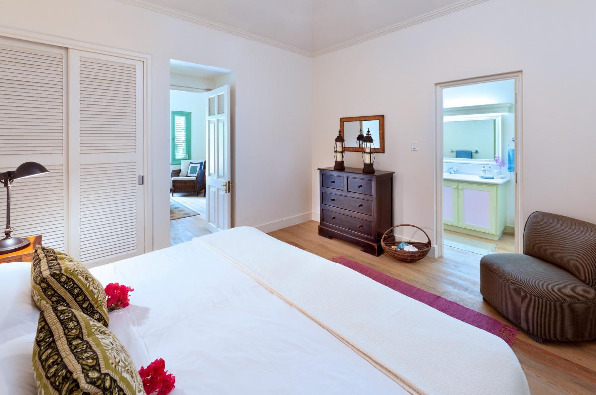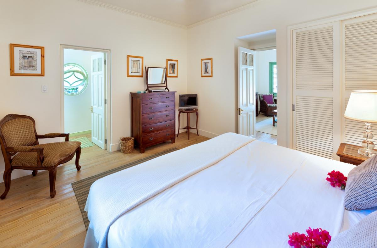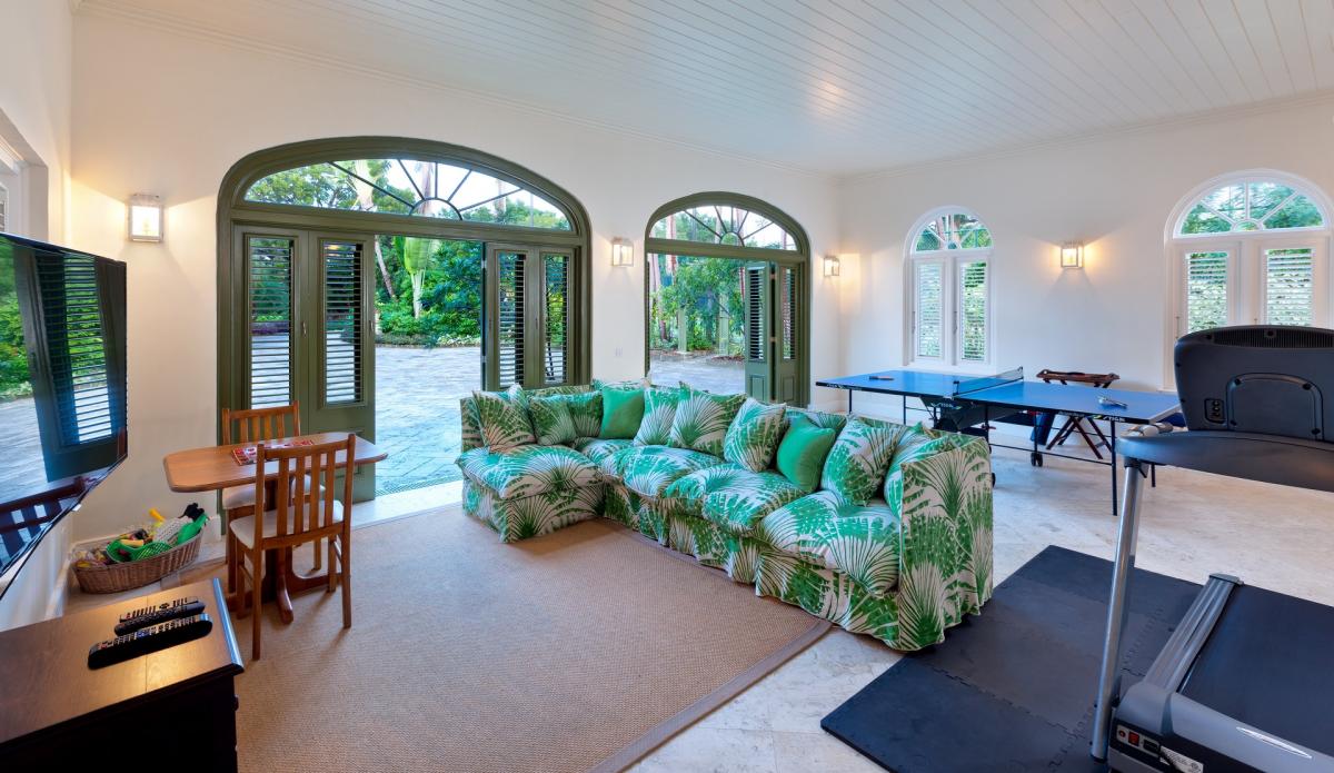 Villa Gardenia's open plan layout welcomes guests as soon as they enter. The foyer opens to an expansive living/dining room featuring coral stone pillars. Guests are then lead out to a large veranda that takes full advantage of the Caribbean sunlight and pictureesque views. Below, the first floor also opens to a terrace complete with wet bar and gazebo. This villa also features a family friendly media room and fitness room.