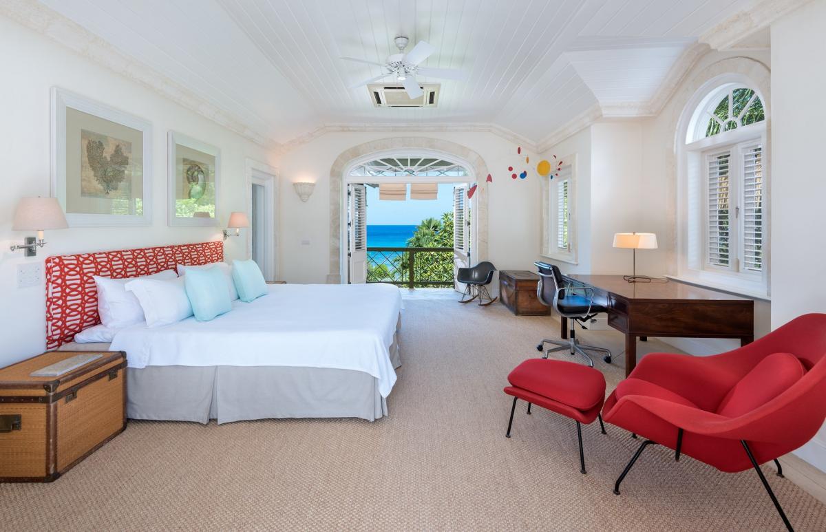 Three guest suites feature entrances to the ground floor terrace with views of the pool and sea. The master bedroom occupies the entire first floor and includes a sitting room, private balcony and luxurous bathroom.