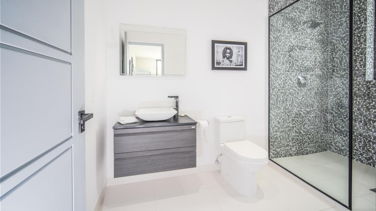 Bedroom 2: This room has a king-sized bed, ensuite bathroom with toilet, shower, and single vanity.