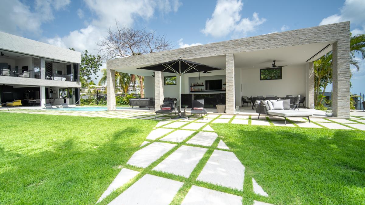 Villa Onyx offers a stunning pool and a shallow end of the pool with a table for wine or your preferred beverage or snack. Directly ahead is a modern entertainment pavilion with a TV, wine chiller, and plenty of seating. The pavilion at this Barbados villa rental resembles an upscale outdoor bar and is cooled by ceiling fans and sea breezes. Villa Onyx provides direct beach access to a sinfully gorgeous white sand beach. Villa Onyx is a short drive away from popular restaurants and shops. Villa Onyx is the ultimate Barbados vacation rental.
