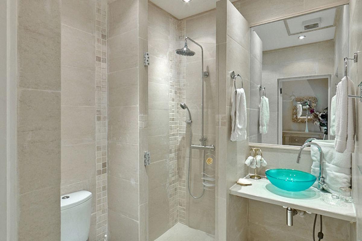 Primary Bedroom: This room is equipped with a king-sized bed, AC, and an ensuite bathroom with a shower.