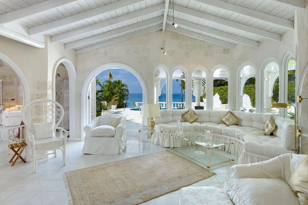 Whitegates, a beautiful four-bedroom beachfront home, situated on a cliff-side with magnificent sea views. The villa has a bright modern interior with fully equipped kitchen, casual dining area and bar, formal dining room and comfortable living area which opens out to an expansive terrace. Accommodating up to 8 guests with four well-appointed bedrooms all with private en-suite bathrooms and air conditioning. The stunning outdoor living space features sundeck, patio, kidney-shaped pool, outdoor dining area and direct beach access via a stairway.