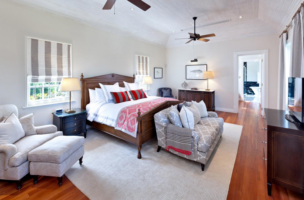 - Bedroom 4: Two twin beds (can be converted into king bed), en suite bathroom with shower, AC, ceiling fan, TV, safe, private patio, access to pool deck and gardens