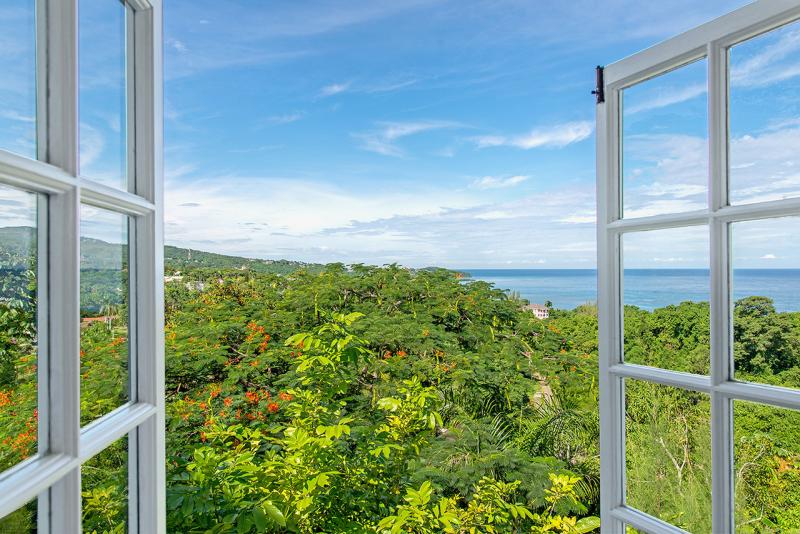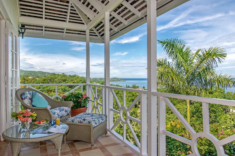 Dramatically perched on a lush green hillside above the sea, Cliffside Cottage commands stunning views of the deep blue Caribbean Sea by day and romantic lights that glisten across Montego Bay after sunset. Sunrise and sunset vistas from this vantage point are mesmerizing.