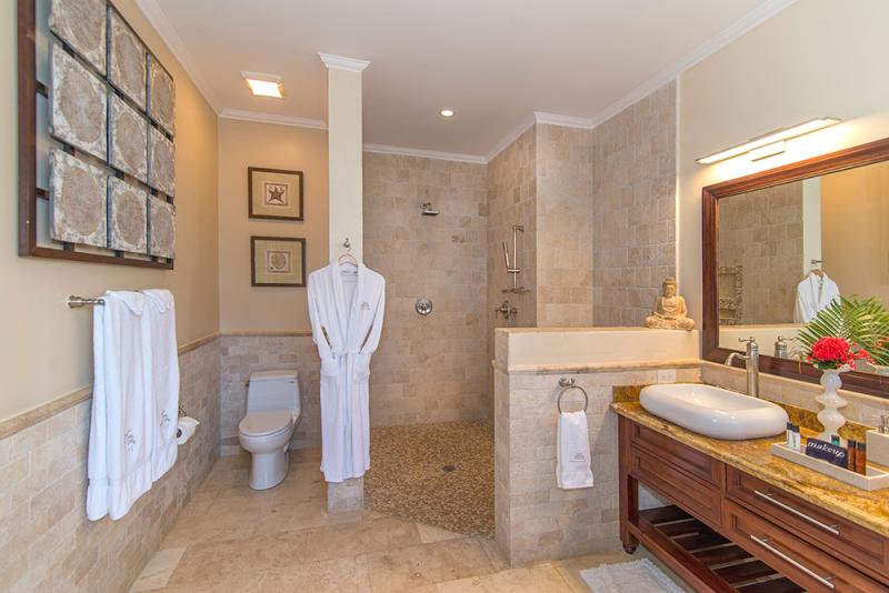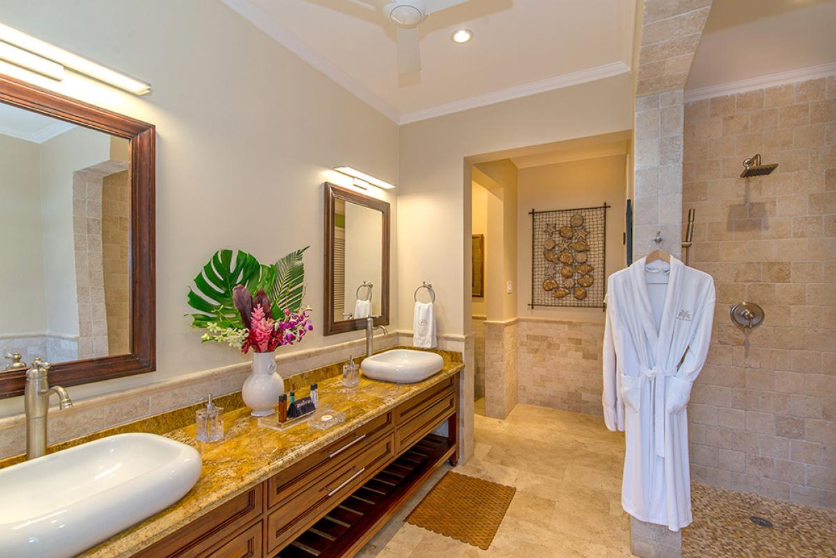 Bedroom 2: King bed, walk-in closet, en suite bathroom with double vanity, vessel sinks and walk-in shower, private patio, ocean view