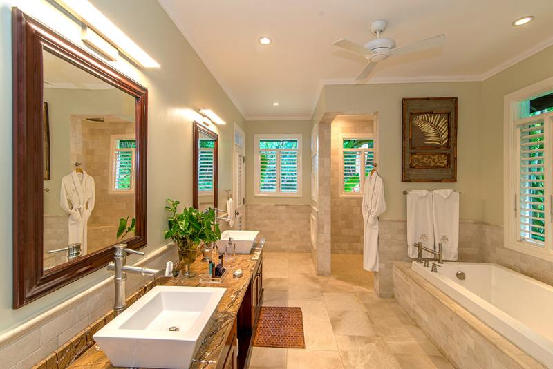 Bedroom 4: King bed, walk-in closet, en suite bathroom with double vanity, vessel sinks and walk-in shower, ocean view