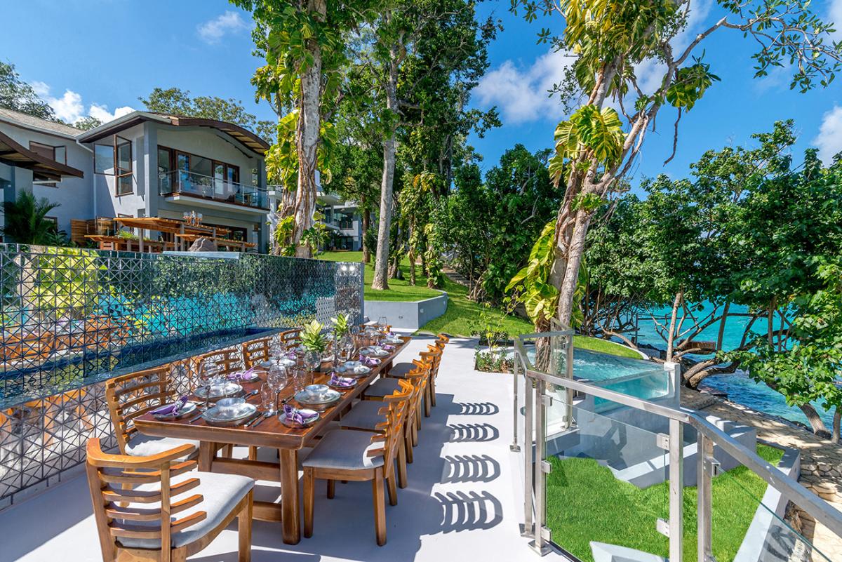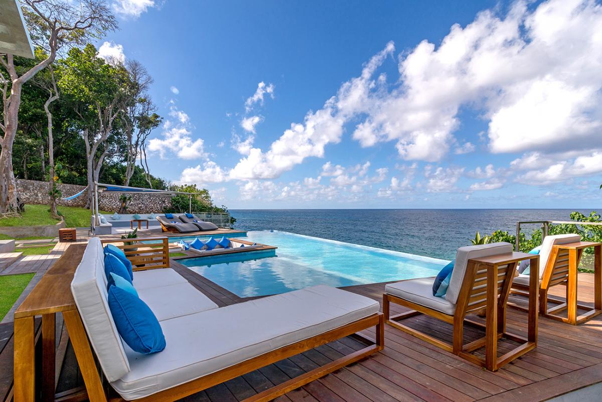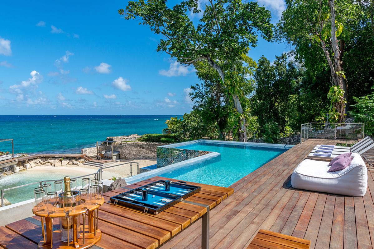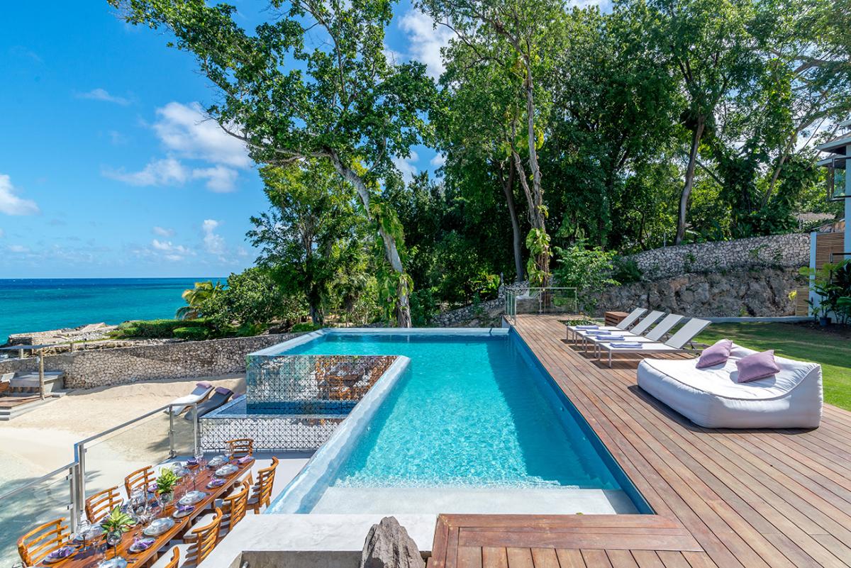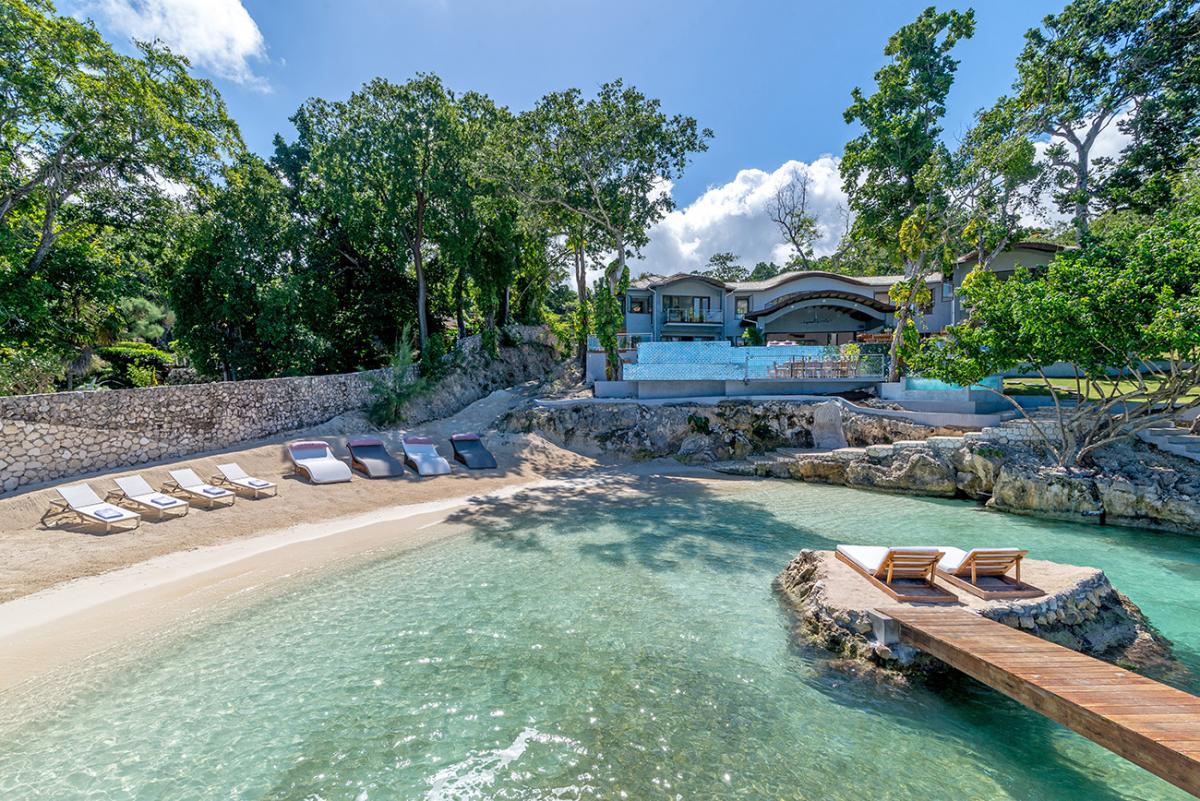 This Jamaica vacation rental is fully staffed with chefs, butlers, housekeepers, personal laundresses, and gardeners. Outside there are two infinity-edge pools, a hot tub that fits ten guests, and an ocean-edge dining area for 16 guests. There is also ocean access, a sandy beach with loungers, a beach BBQ area, and sunbathing terraces. Guests also have a private clay tennis court that has racquets and balls available. A private gym is equipped with stationary bikes, Cybex lat row, multi-leg press, leg extension, leg curl, two treadmills, a stair climber, and 5-50 lb weights. Inside there is also a game room that provides access to the second-floor terrace equipped with multiple seating areas. The private underground spa is the perfect place for guests to relax and recharge while on a perfect Jamaican vacation. Promiseas villas give guests the ultimate vacation from the comfort of their private property.