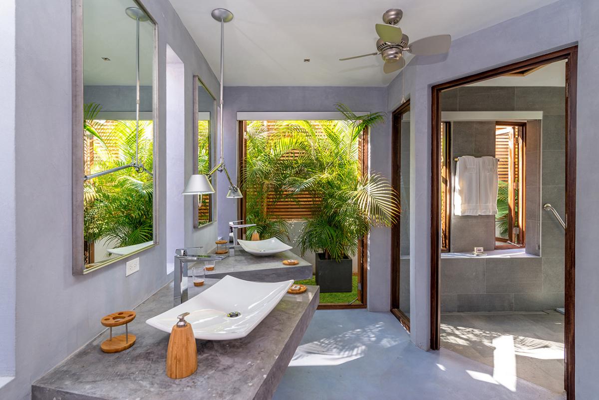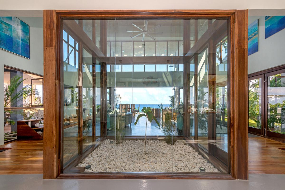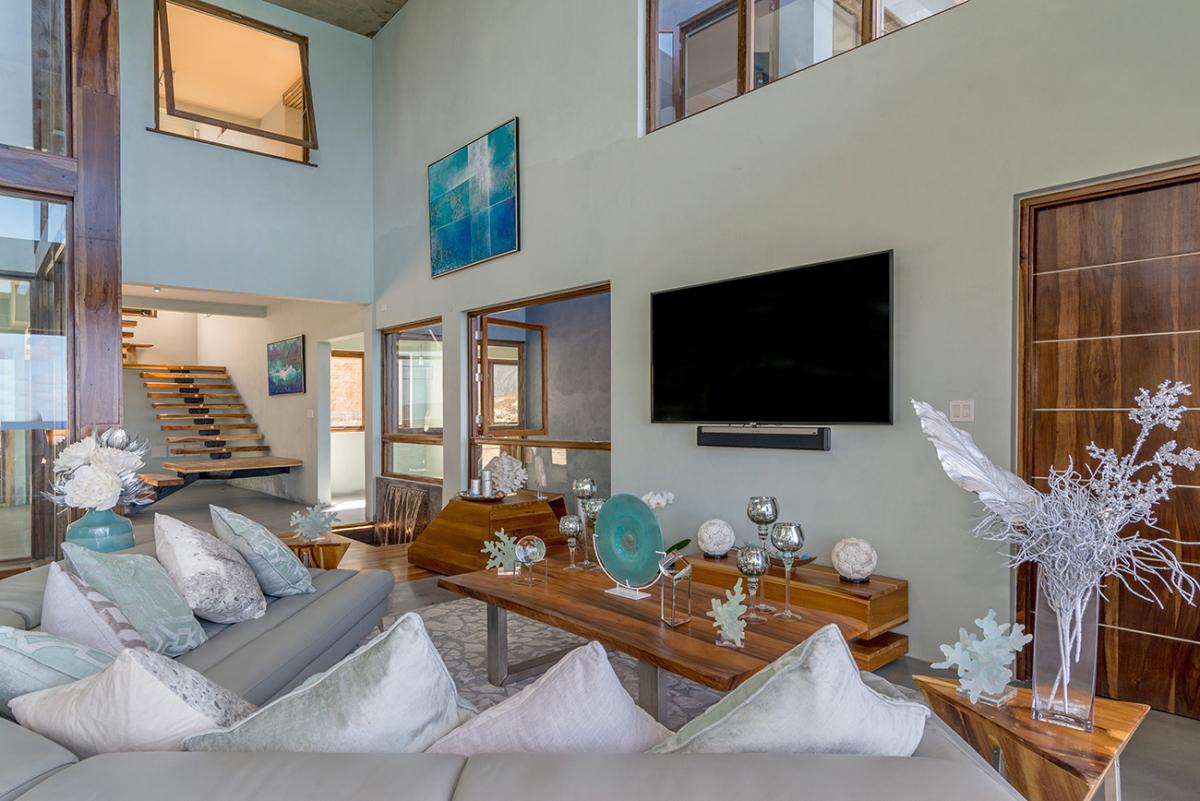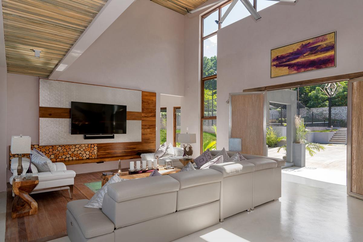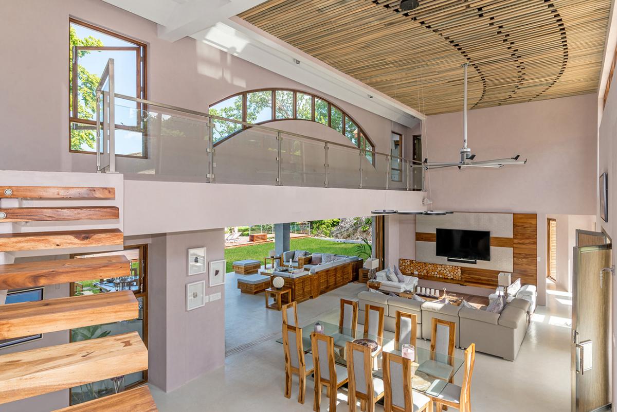 Promiseas 1 has unique designs such as a curved shingle roof, a curved mirrored entrance ceiling with contemporary lighting that helps to highlight the areas, and the Blue Mahoe ceilings. While Promiseas 2 has a glass atrium in the center of the living room with a gorgeous Teak tree growing through the open top in the third-floor treehouse bedroom.