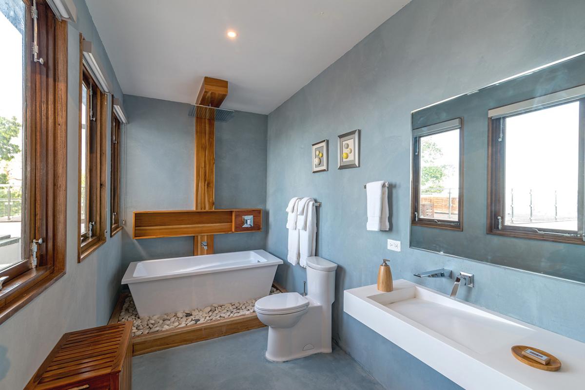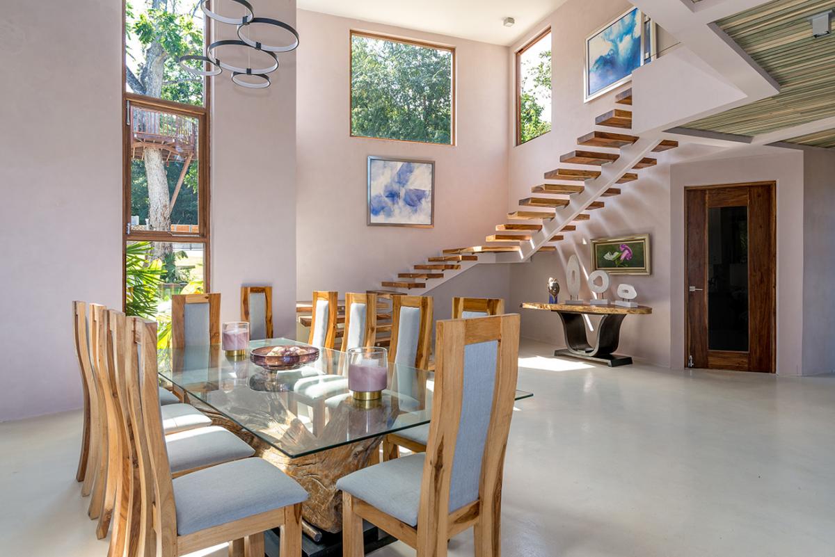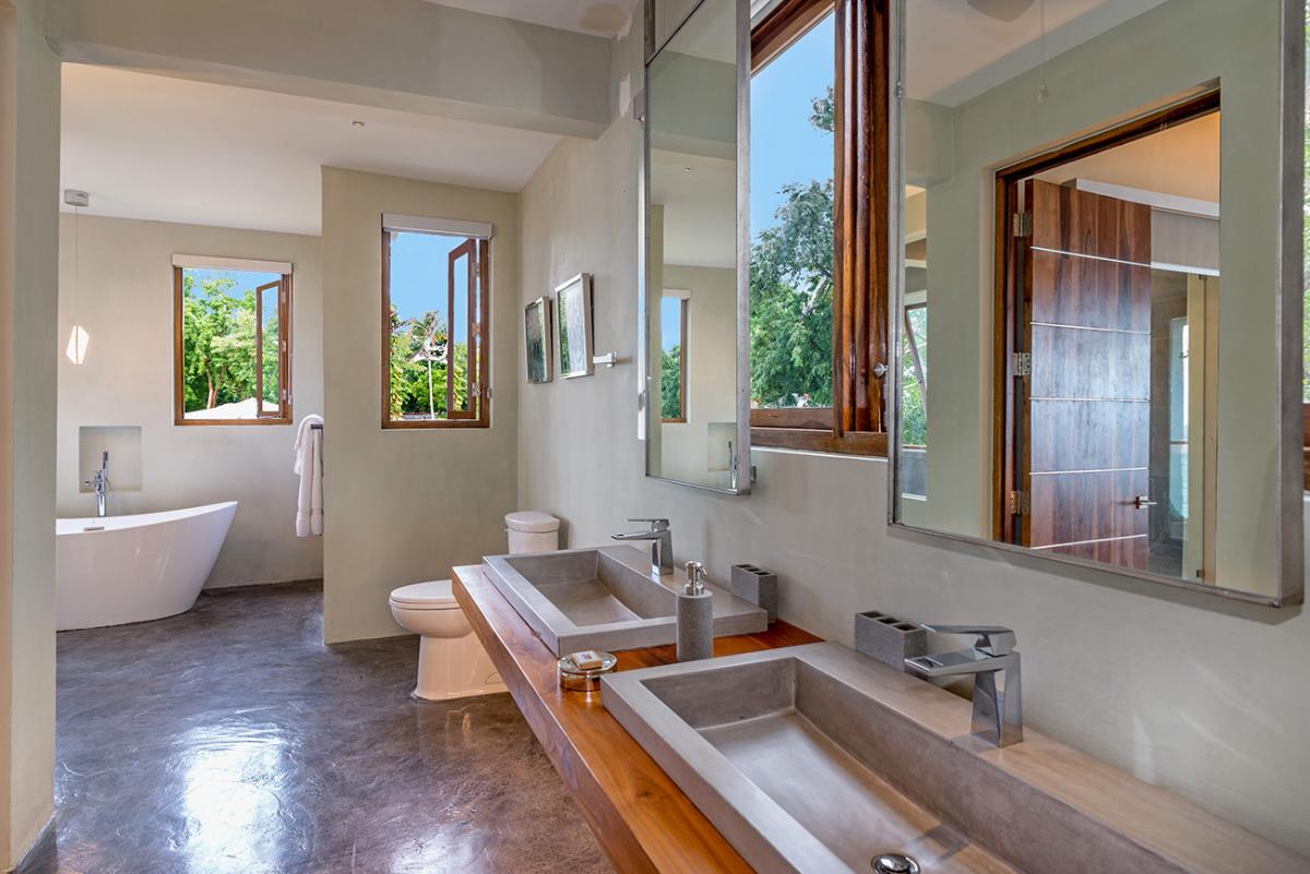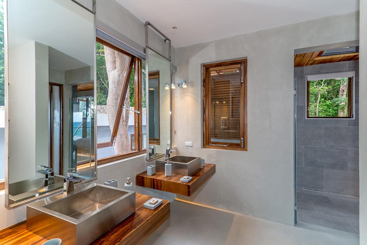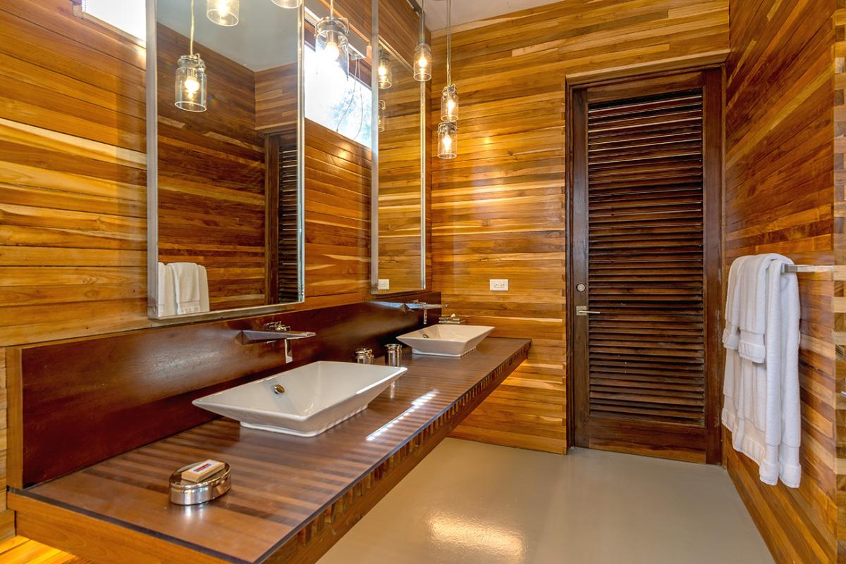 Promiseas 1 has unique designs such as a curved shingle roof, a curved mirrored entrance ceiling with contemporary lighting that helps to highlight the areas, and the Blue Mahoe ceilings. While Promiseas 2 has a glass atrium in the center of the living room with a gorgeous Teak tree growing through the open top in the third-floor treehouse bedroom.