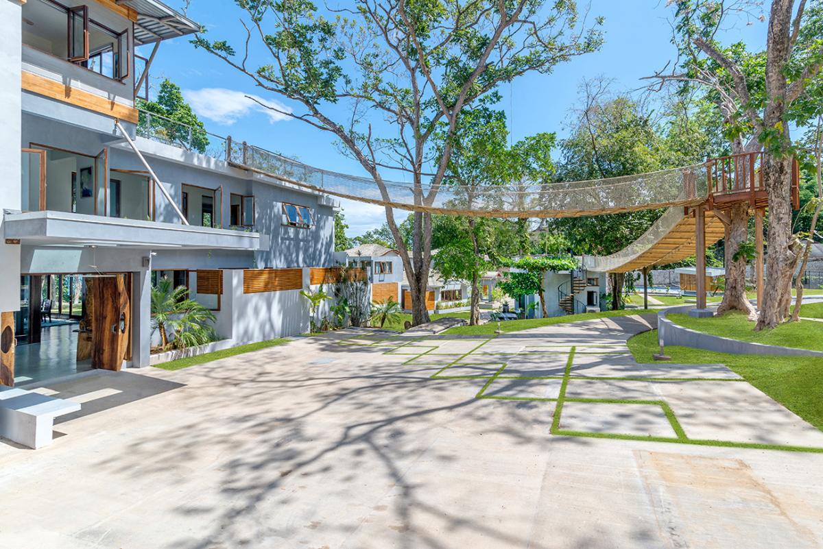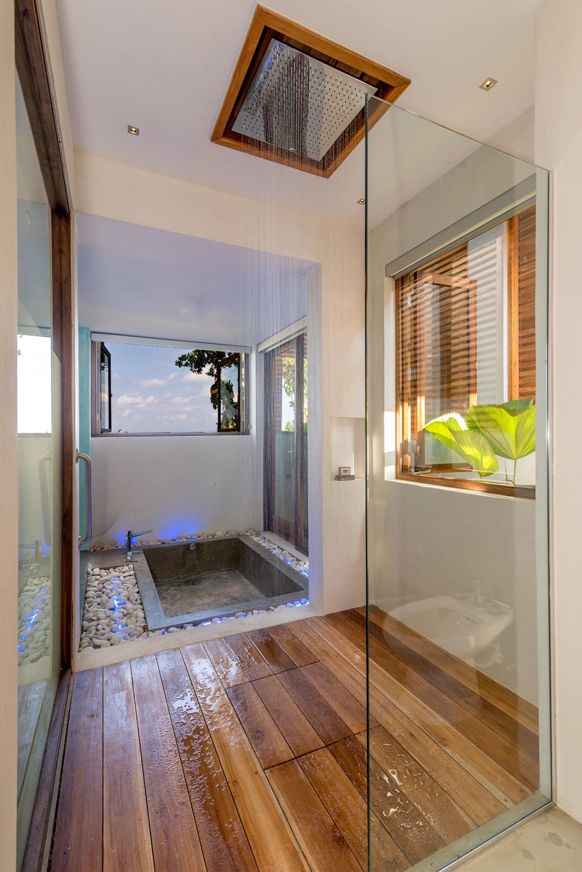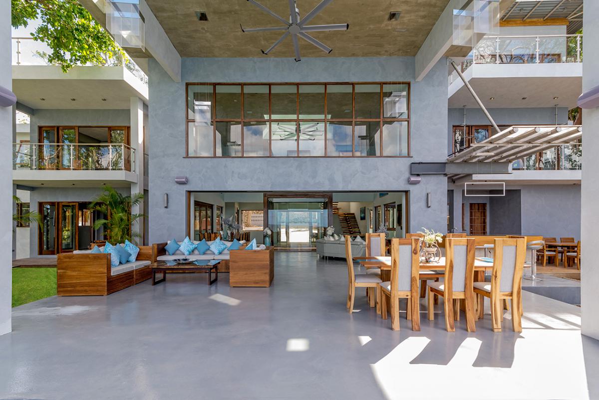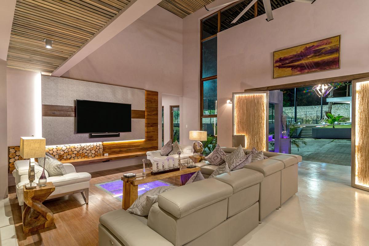 Promiseas 1 has unique designs such as a curved shingle roof, a curved mirrored entrance ceiling with contemporary lighting that helps to highlight the areas, and the Blue Mahoe ceilings. While Promiseas 2 has a glass atrium in the center of the living room with a gorgeous Teak tree growing through the open top in the third-floor treehouse bedroom.