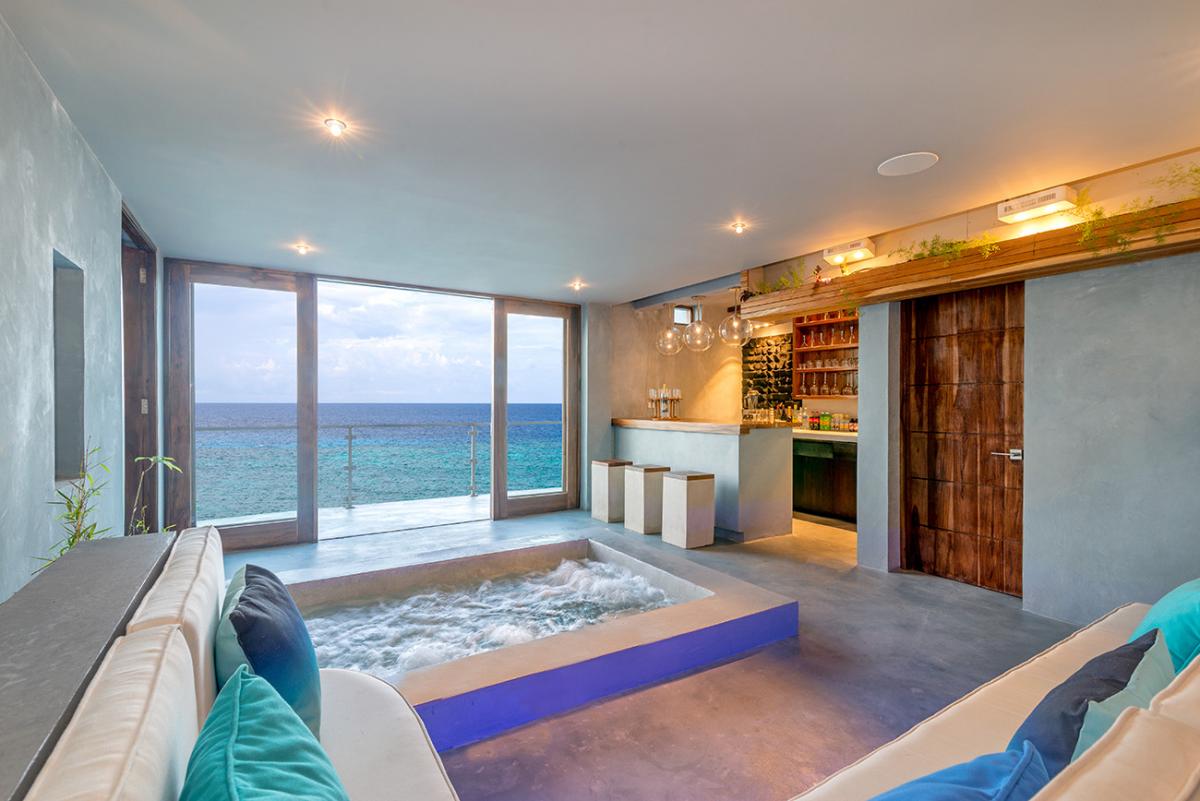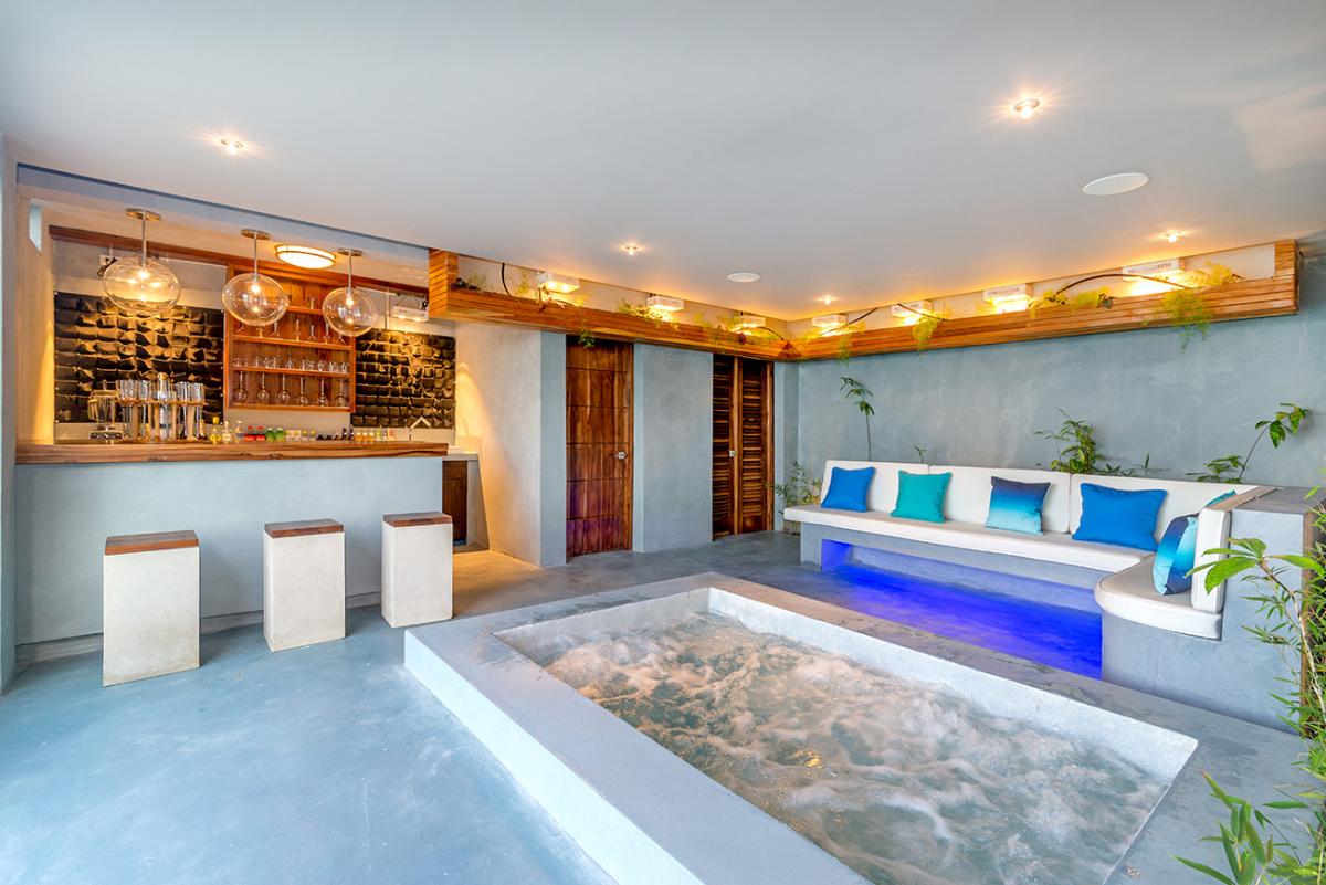 Please note that the private spa, which includes an underground cave, bathroom, hot tub, massage deck, bar area, and sitting room are currently unavailable. We apologize for the inconvenience.
