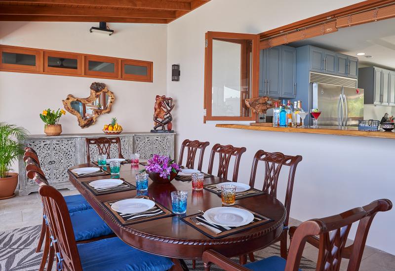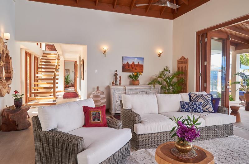 Timbuktu by the Sea is a modern and contemporary villa located on the sea. Newly built, this villa offers modern bedrooms and bathrooms with private terraces or balconies with sea views. Outdoor living abounds at Timbuktu by the Sea starting with a covered verandah and outdoor dining area near the pool. A lower level offers a BBQ area as well as a yoga space overlooking the sea. When the sea is calm, guests can follow the stairs down to the private jetty to snorkel among two fish sanctuaries that exist just offshore.
