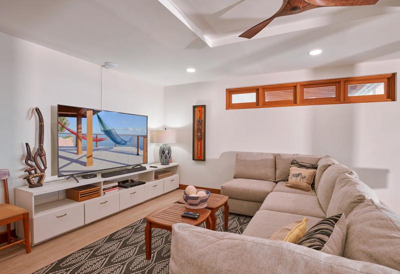 Within the interior of Timbuktu by the Sea, you will find 5 contemporary bedrooms with ensuite bathrooms tastefully decorated, as well a fully equipped kitchen and indoor/outdoor dining options. In addition, the living room provides stunning sea views and a media room that is equipped with entertainment for all ages.