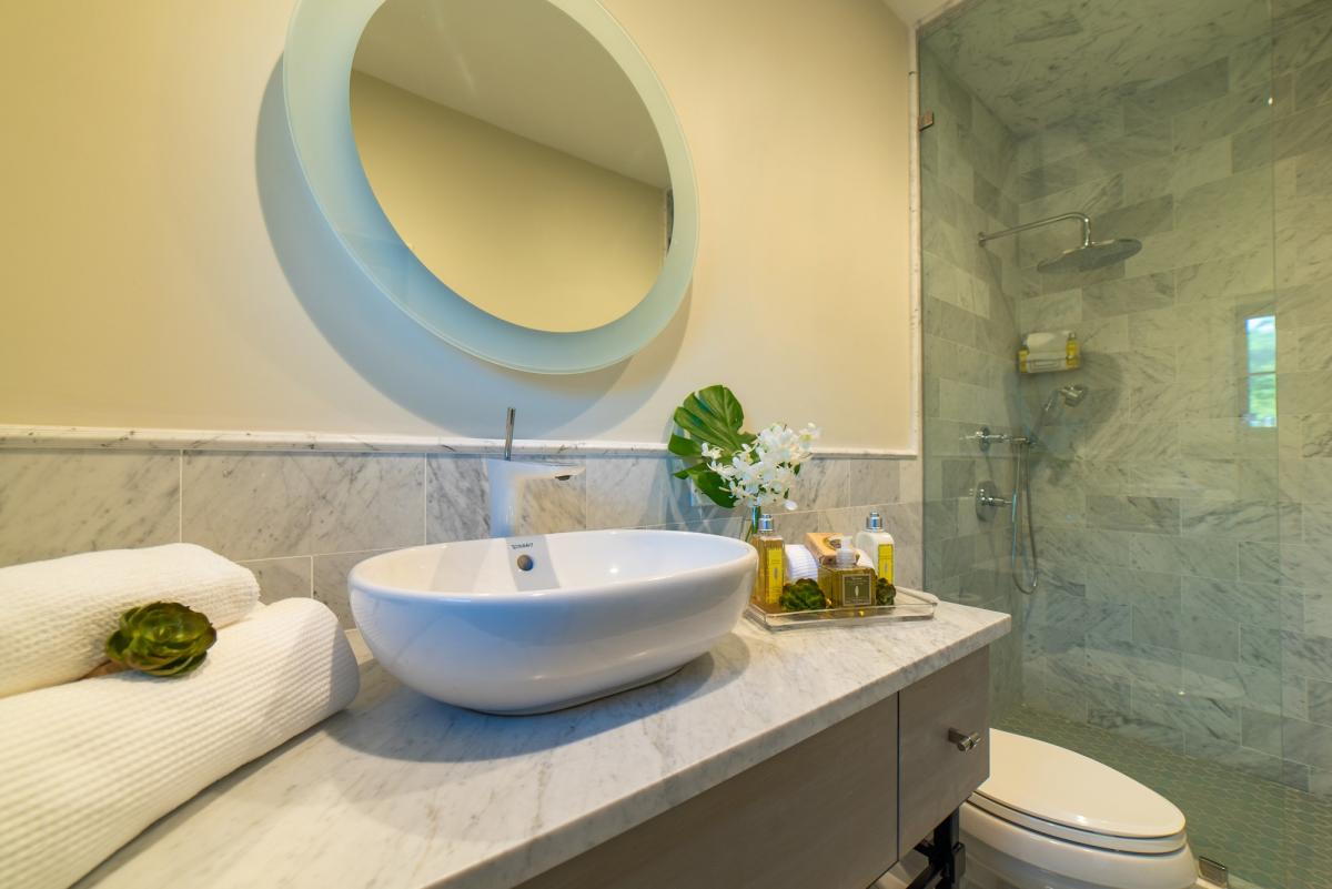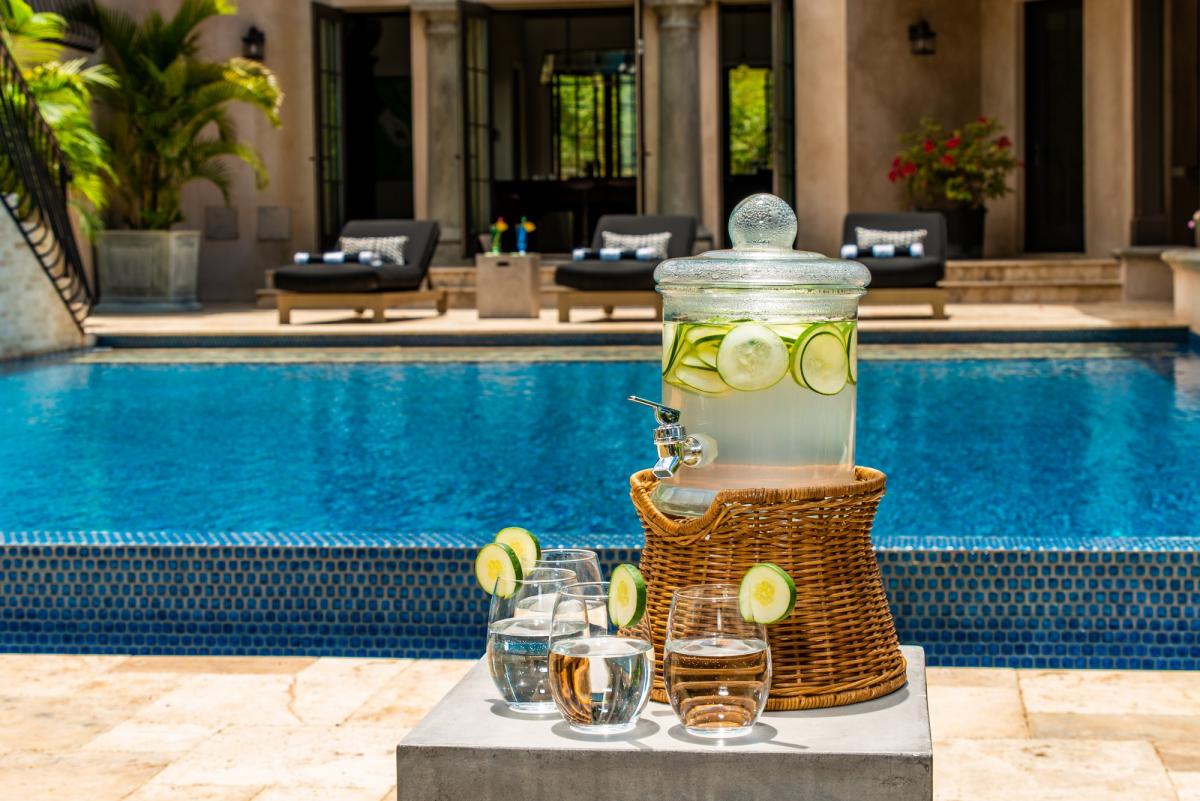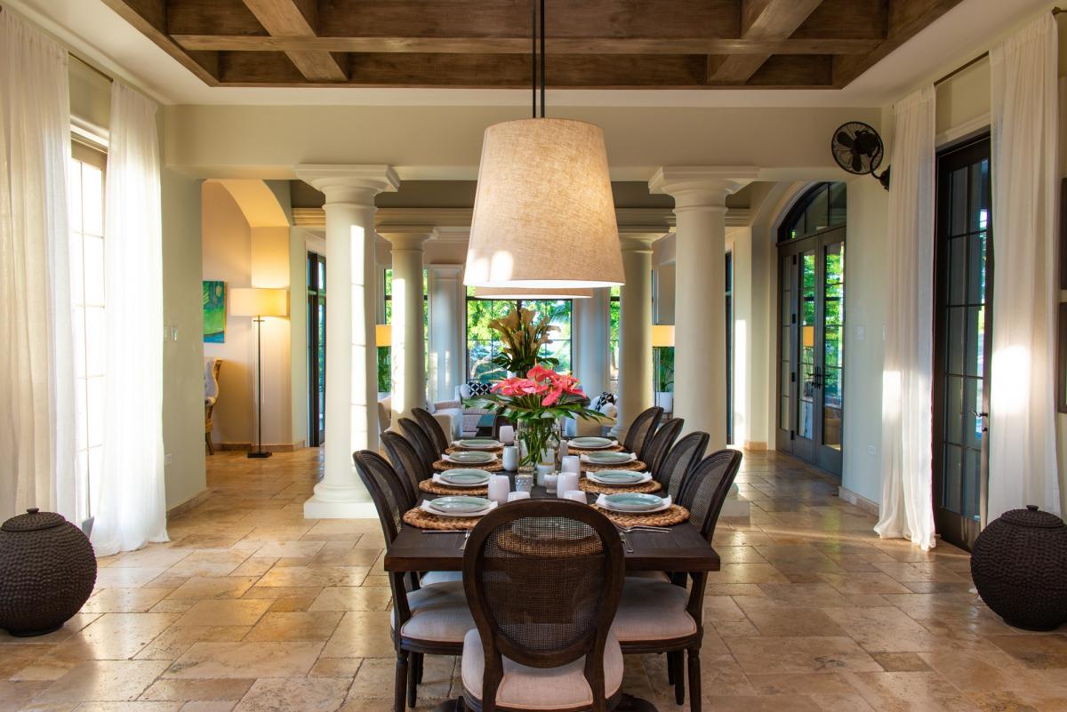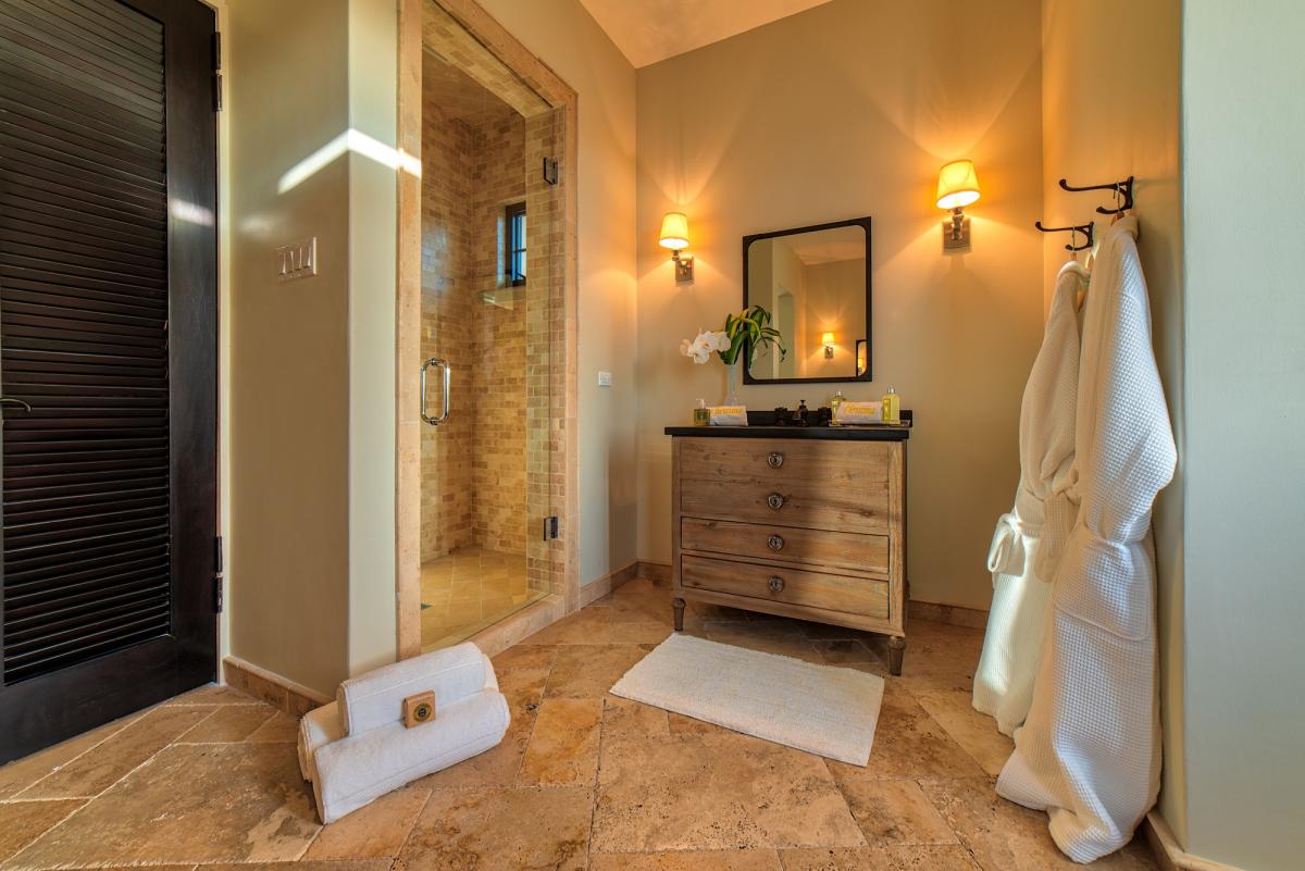Designed with the highest level of detail in contemporary style, Villa Christina’s five spacious bedrooms feature en suite bathrooms, AC, Samsung 40-inch HD televisions, and walk-in closets. Each room is meticulously appointed to provide both comfort and luxury. The master suite contains two bedrooms, a spacious master bathroom, large walk-in closet, morning bar with under counter refrigerator, and a Jacuzzi on the master patio. The guest suite features a separate private entrance, full-size bathroom, large walk-in closet, and a morning bar as well. The remaining 3 bedrooms offer en-suite bathrooms, walk-in closets, and plenty of space to relax while enjoying your Caribbean retreat.