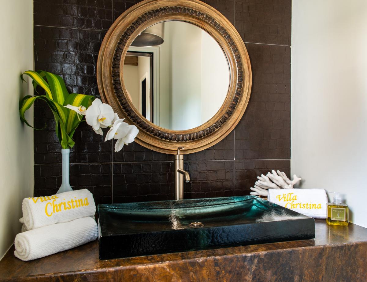 Villa Christina offers five luxury bedroom suites featuring stunning views of the Caribbean Sea and mountains beyond. This villa boasts entertainment areas include a billiards room with wet bar and 8-foot pool table, wellness center inclusive of a spa, exercise room, and steam room, two Jacuzzis, a heated salt-water affinity pool, TV lounge and entertainment area, covered terrace, and romantic lookout tower.