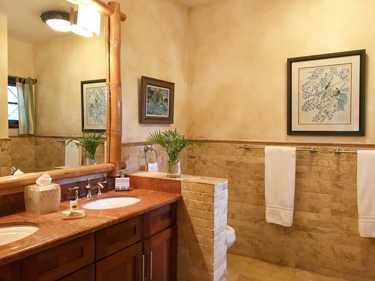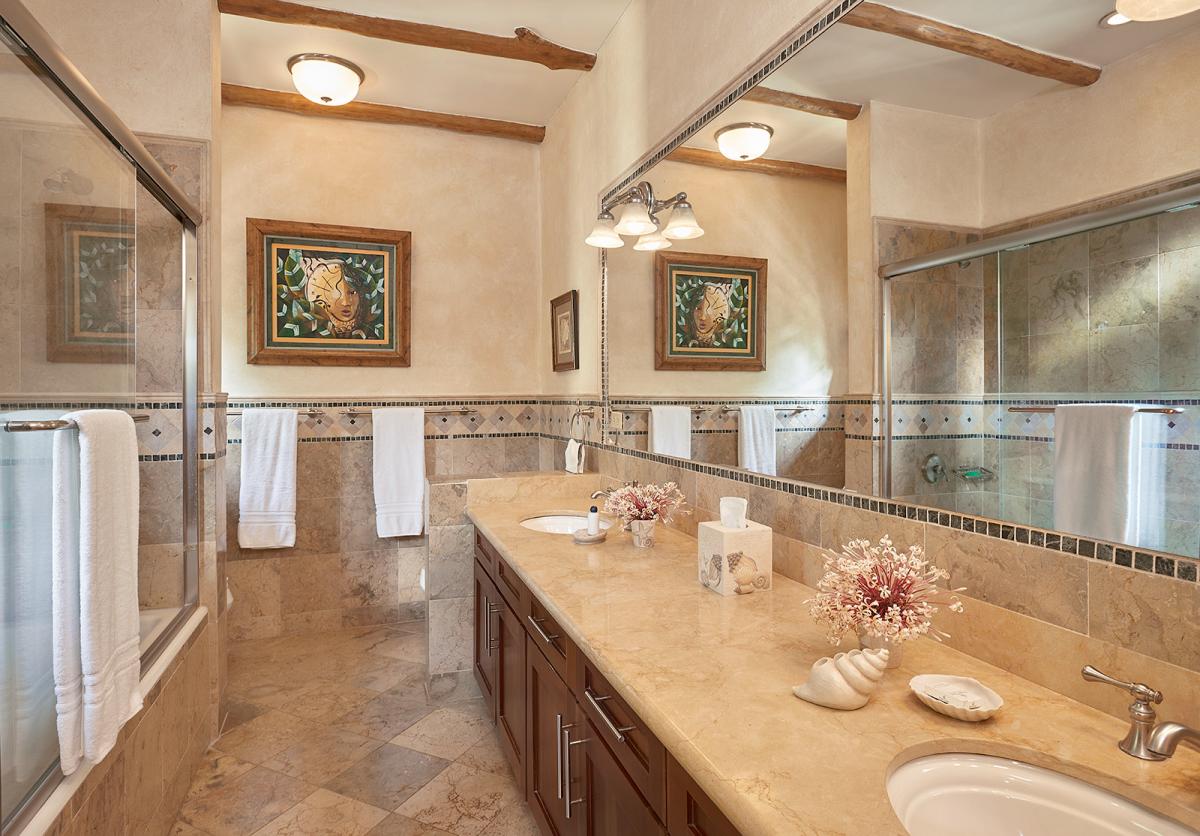 Interiors are furnished beautifully with silks and original art. Stepping stones lead down a velvet lawn to a fine sand beach that is separated from the Keela Wee beach by a small grassy yard. Their double beach is available for guests renting both villas. Amenities include complimentary sea kayaks and other water toys.