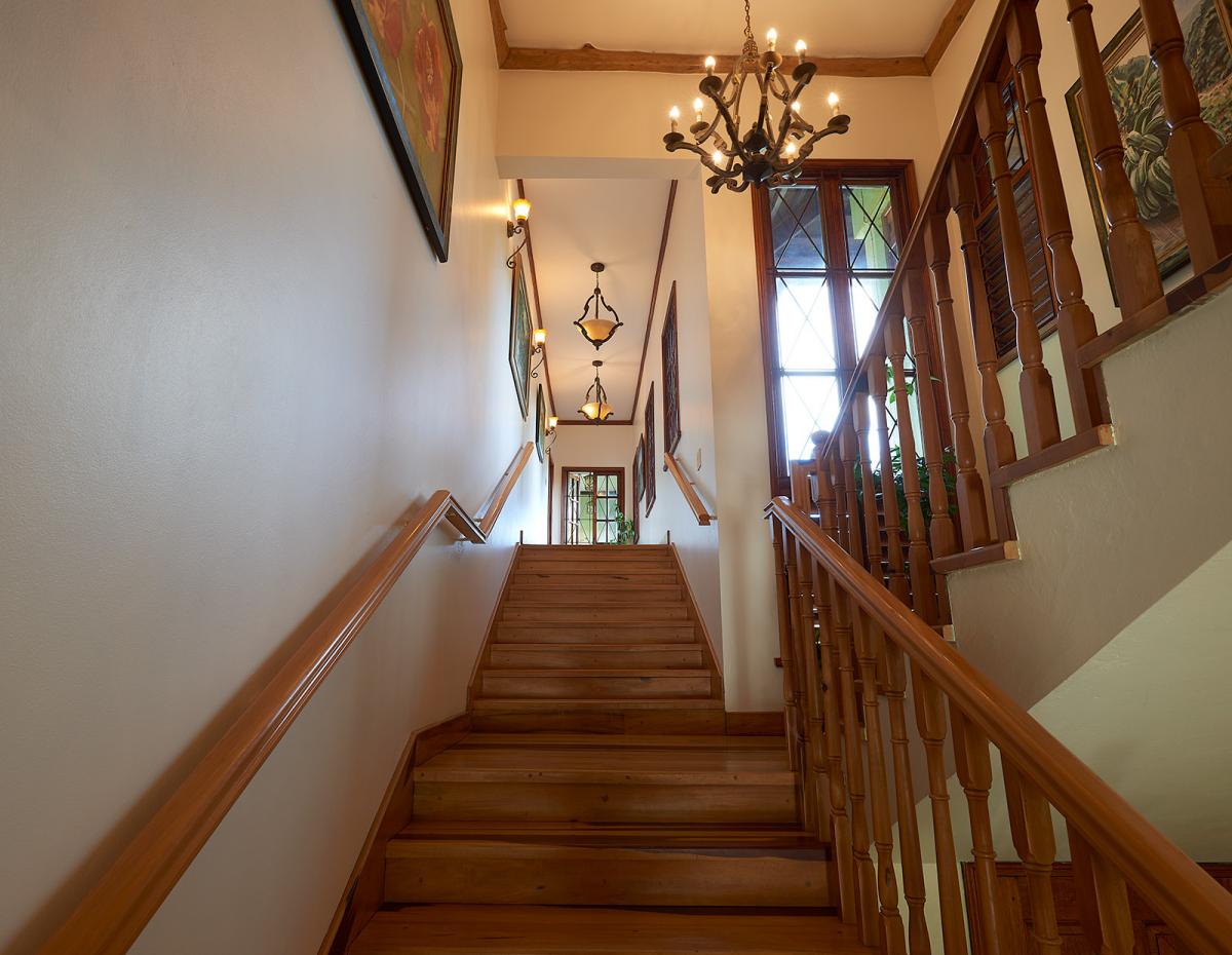 On the main level is the massive Great Room. French doors open wide to a large furnished verandah and bar. Just beyond are the private pool, Jacuzzi, shallow childrens pool, lawn, beach and bay. Upstairs is a second sitting room, entertainment center, Internet area and five of the seven bedrooms. Floors throughout are a combination of gleaming wood and imported stone.