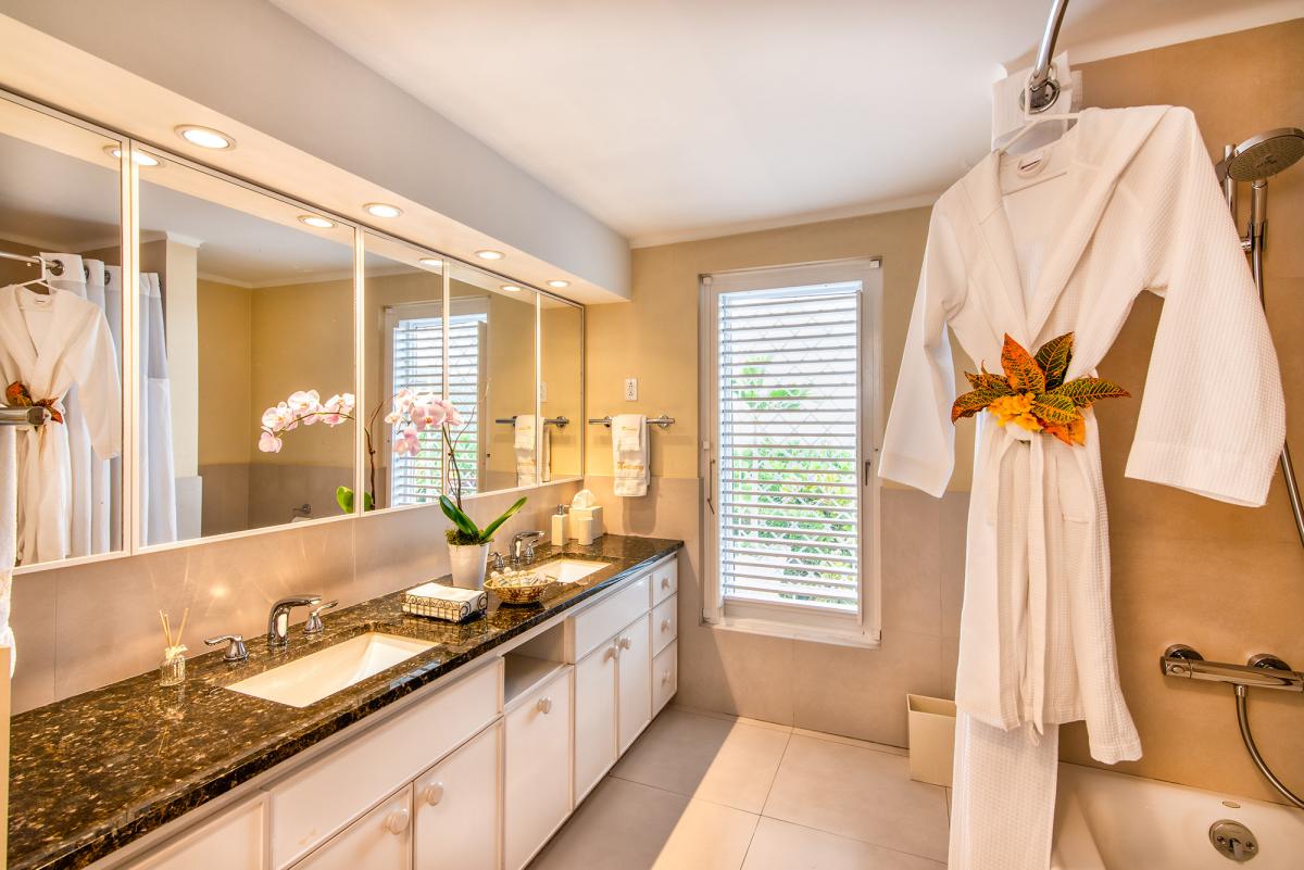 For larger groups, Windsong can be rented with its neighboring villas, Hanover House and Goat Hill ~ each within walking distance ~ for a compound of 13 bedrooms, 3 swimming pools, 2 tennis courts and 19 staff including 3 cooks. This is a convenient and excellent combination for wedding parties and family reunions.