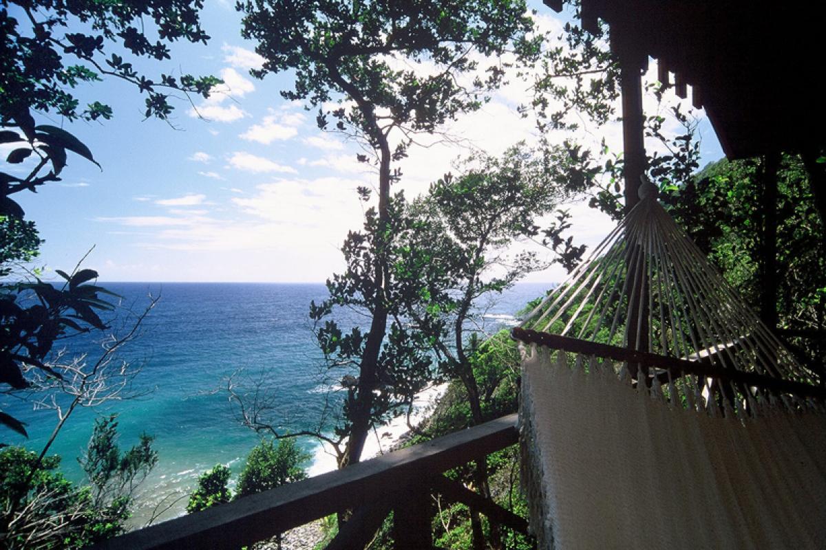 The island of Dominica, set between Martinique and Guadeloupe, is the Caribbean in its purest form and Jungle Bay Resort and Spa captures that sense of the wilderness. On this island with lush green forest covered mountains, towering palms, beautiful flowers, home of rare species of parrots and orchids, dramatic waterfalls, and hot springs and rivers, guests feel as if they are walking in Eden. Jungle Bay Resort and Spa is bordering the Atlantic Ocean and Morne Trois Pitons National Park, a UNESCO World Heritage site. The award winning Jungle Bay Resort and Spa is known as an eco-luxury property, retaining the comforts and high standard of service to guests, while operating in a sustainable way. The property is located on 55 acres of lush tropical jungle ready to be explored. Plenty of excursions, lots of adventure, on site activities, and the opportunity to relax and rejuvenate are offered by the Jungle Bay Resort and Spa every day. Enjoy the privacy of the spacious, rustic, yet comfortable and luxurious cottages with wonderful rainforest views. The facilities were designed with the natural environment in mind. Guests have to be prepared for walking, as some cottages are located up to 200 steps away from the main path. The cottages at Jungle Bay Resort and Spa are unique Caribbean accommodations. 35 tastefully furnished tropical hardwood cottages are elevated on wooden posts, nestled beneath the undisturbed jungle of Dominica. The cottages at Jungle Bay Resort and Spa are spacious and feature wood furnishings all designed and built at Jungle Bay Resort and Spa. They are perched like birds nests, tucked away on a hillside between Cedar, Gomier, and Galba trees. Special care was taken to preserve the forest in its original form. Cottages at Jungle Bay Resort are accessed through a series of footpaths and stone staircases. The low impact night lighting along with the sound of the Atlantic surf creates a romantic, surreal ambiance.
