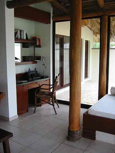 Entirely hand crafted, Villa 5 features Italian tile floors throughout, marble bathrooms, and hand woven roofs with hand carved timbers. It is fully air-conditioned, just steps away from Nevis' extraordinary beachfront. The hand hewn doors of the perimeter walls open onto a private courtyard and the double doored entry to the villa. With soaring hand woven roofs and views to the Caribbean Sea, you will thoroughly enjoy the breathtaking beauty of this villa.