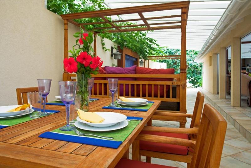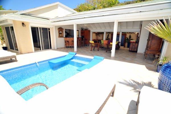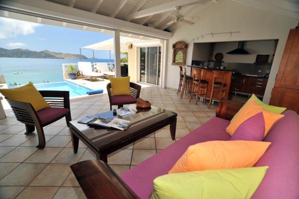 A new, premier vacation villa, Écoute Ton Coeur (Listening Heart), is professionally designed to bring the most magnificent ocean view of Point Milou into it’s living space. This private, two bedroom villa offers comfort and luxury, and harmony surrounds you. Whether you're relaxing in an Indonesian daybed near a waterfall, or taking a rain shower overlooking a lush garden with a pond, you’ll feel like you have arrived. Tucked in a garden setting, wondrous colors converge. Listening to restful tones under a shaded terrace or bathing under the Antilles sun, relaxing to gentle sounds of the sea on the sun terrace. Take a serene journey and let your imagination fly.