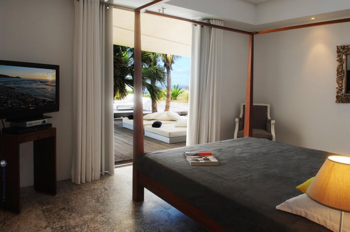 The accommodations are as follows: Bedroom 1: located in the main house, king size bed, ensuite bath with double sinks, walk in shower and bidet Bedroom 2: located in a separate pavilion, king size bed, ensuite bath with double sinks, walk in shower and bidet Bedroom 3: located in an independent one bedroom villa next to the main villa, king size bed, ensuite bath, living room, kitchenette and a private pool As you can tell by the description, all of these bedrooms offer a great deal of privacy.