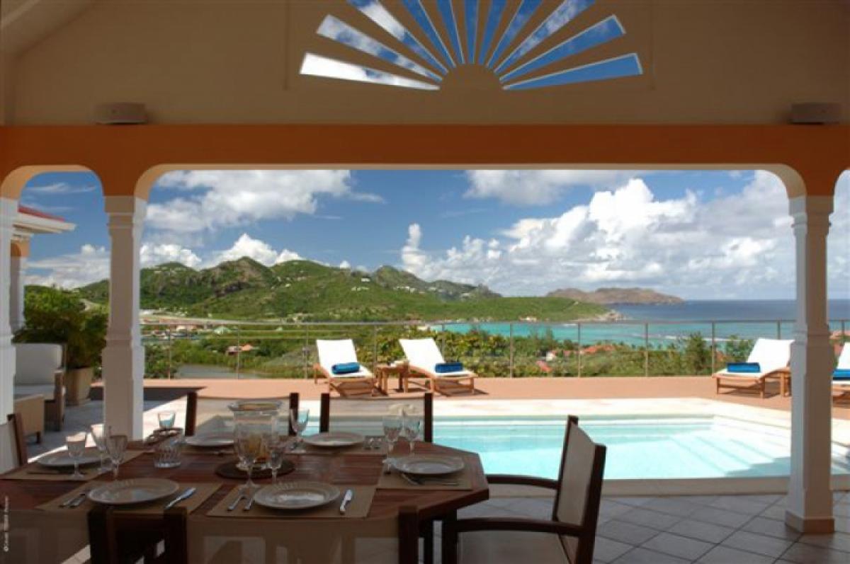 Villa Les Acajous is a true little paradise of coziness and tranquility. Sunkissed and brushed by the gentle breeze of the trade winds, its terrace is a great place for sunbathing and relaxation. Enjoy the swimming pool overlooking the bay and relax at your convenience in the lounge. Villa Les Acajous is very comfortable with rattan furniture, spacious living room, and sliding doors opening onto the front and side terraces with panoramic views around the beautiful pool and sunny deck. It is a short drive to either beach, Salines or St. Jean, and conveniently close to the restaurants and shops of Gustavia.