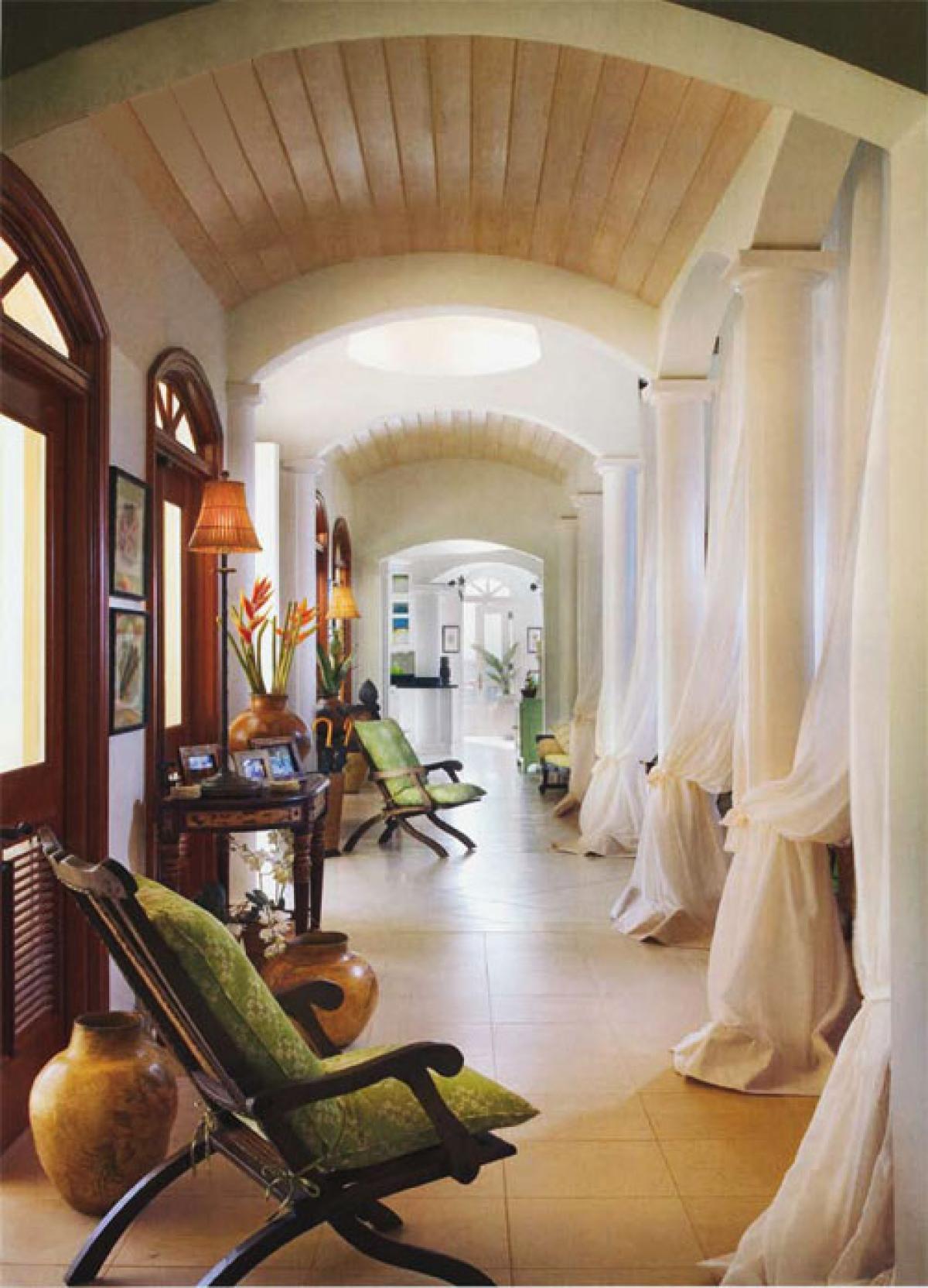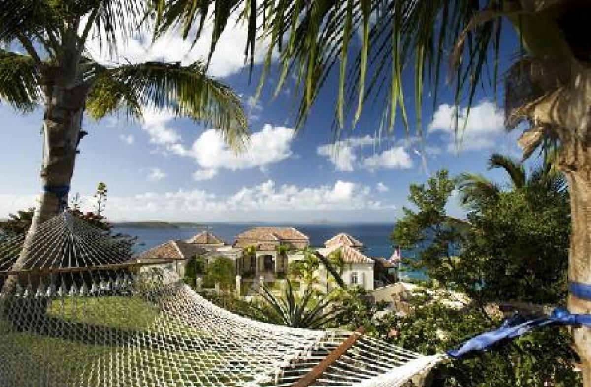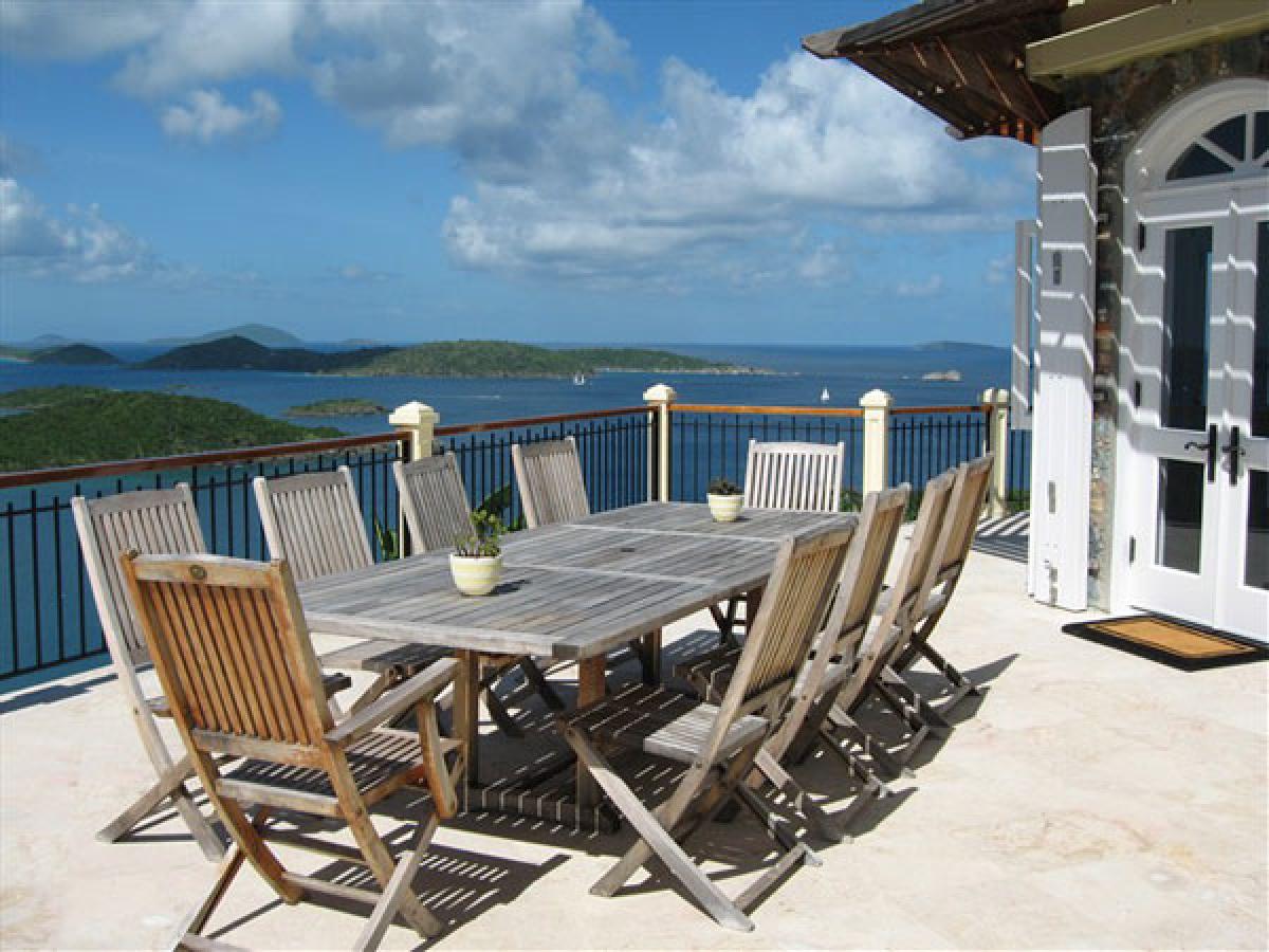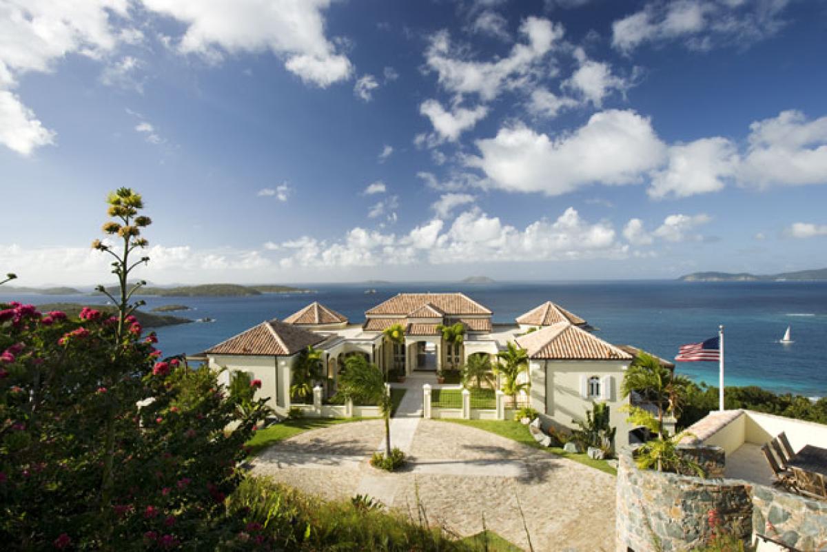 The superior architecture of Hawksview Estate captures the essence of old world sophistication and charm with its lofty exposed beam ceilings and gracefully arched windows and doors. Situated on five very private acres within the Virgin Islands National Park boundaries, Hawksview Estate is located on the north shore of St. John, on the ridge top between Hawksnest Bay and world renowned Trunk Bay, providing a panorama of breathtaking views. The Hawkview Estate house portals rich mahogany woodwork frames, and the interior floors are tiled in Bulgarian limestone and Italian marble. Hawksview Estate's tasteful West Indian architecture showcases the myriad of pristine natural beauty visible at every glance from within the villa, while the stylish mix of Caribbean and European furnishings harmonize to create a casual and comfortable ambiance.
