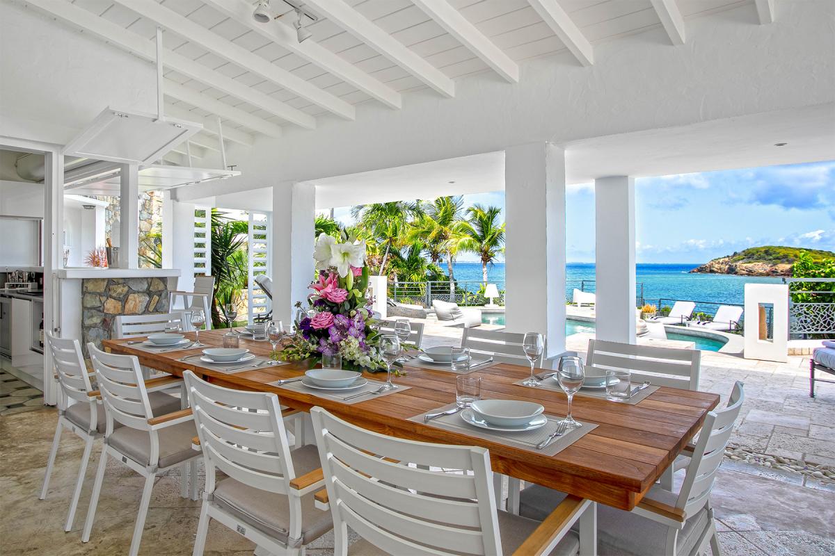 At the end of a private beach road, located in the exclusive community of the Terres Basses, is Villa Amethyst, an oceanfront luxury villa with the feel of a country home found in the South of France. Renovated in 2021, the villa incorporates high-end furnishing along with a brand new modern kitchen and extended pool and terrace. The villa has evolved in to a contemporary home that will find guests wishing it was their very own.