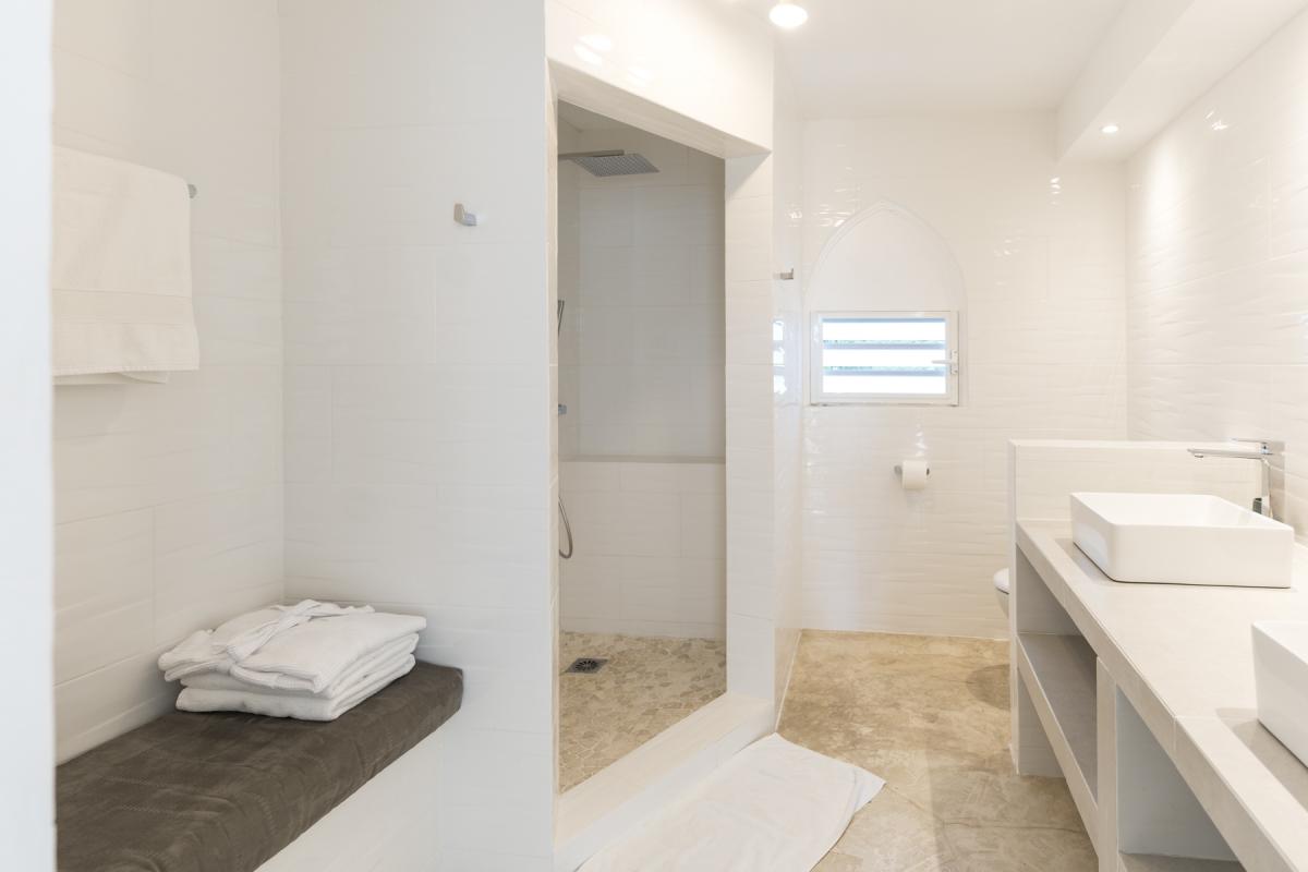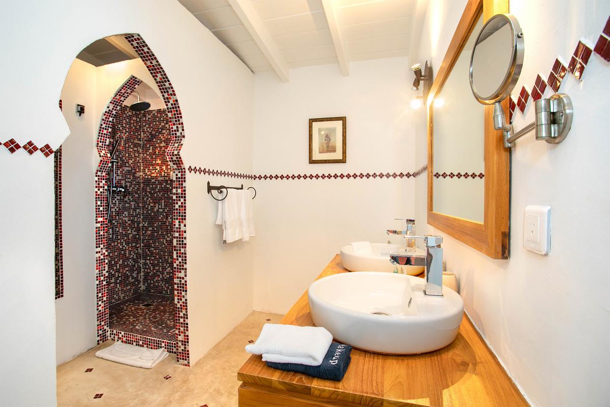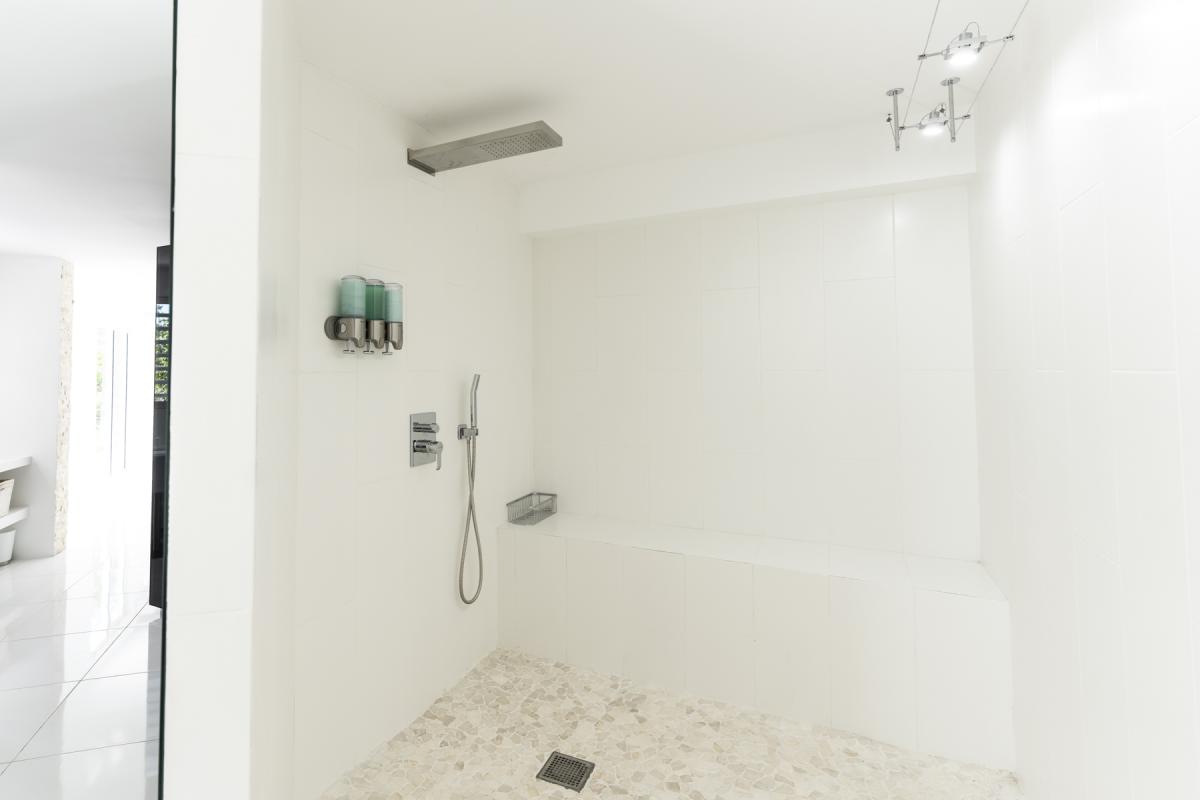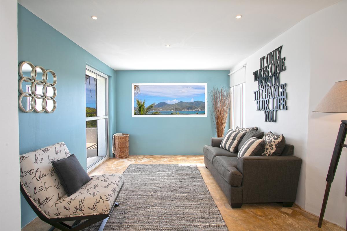 The five newly renovated bedrooms, with en-suite bathrooms, are stylishly unique and exotic; each with a different design theme. All have sea views and two have been enlarged to include private seating areas with outdoor terraces. One bedroom is on the first level and only steps from the pool. The two upper level bedrooms each open to the covered terrace but can also connect via a locked shared door via the master bathroom. A seclude outdoor reading area can be found at the end of the covered balcony.