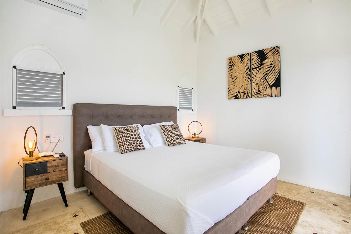 - Bedroom 2: King bed, private bathroom with shower, living area, Smart TV, AC, ceiling fan, private terrace
