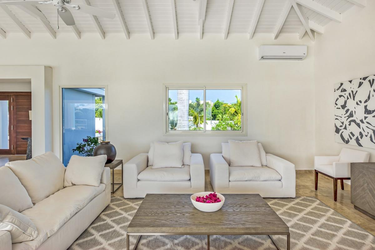 Although secluded, you are close to amenities. It is a short drive to Baie Longue Beach and to Baie Nettle’s new culinary stars; Le Sand, Dreams and Mezza Luna. You are 2 minutes to the grocery at Puerto Cupecoy and another five minutes to the airport. In 10 minute you reach the charming French capital of Marigot with restaurants, shops, historic buildings and the Creole Market. Drive 25 minutes to Grand Case or Philipsburg’s shopping haven.