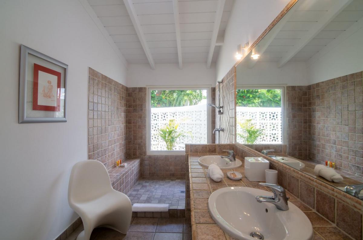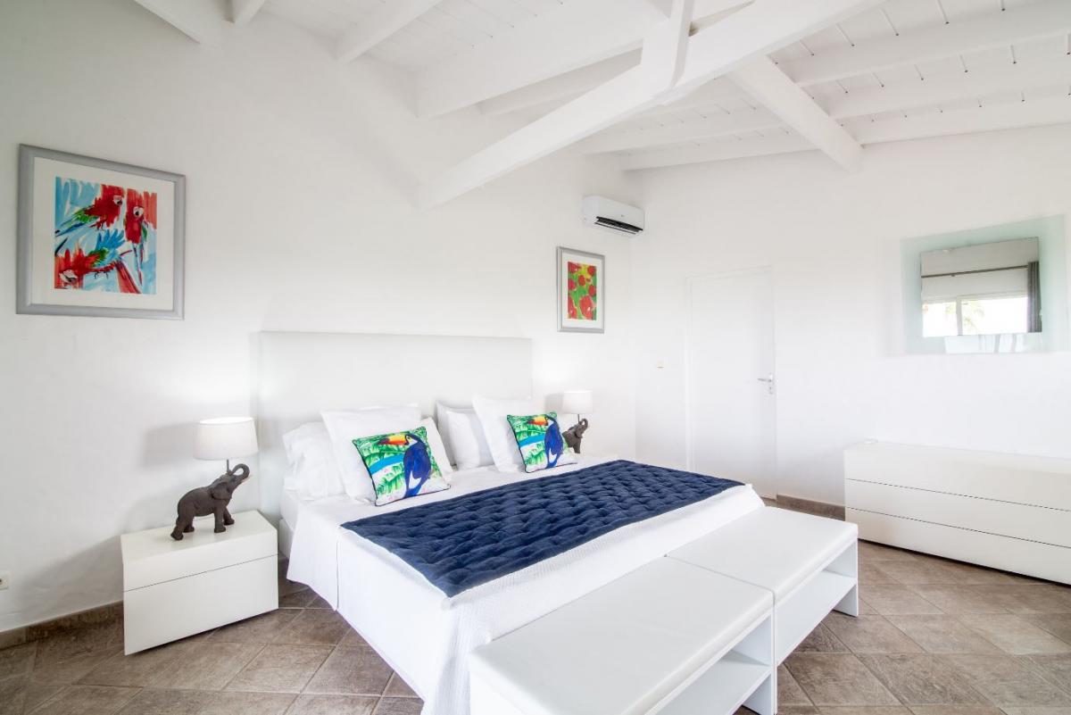 The living room has satellite TV, stereo and piano and opens directly onto a terrace with large salt water pool and gazebo and outside dining and seating area. The 3 bedrooms each have en-suite bathrooms and air conditioning. Just a 5-minutes drive from two of St. Martin's most beautiful beaches, Baie Longue and Plum Bay, Villa Callisto is the perfect Caribbean retreat.